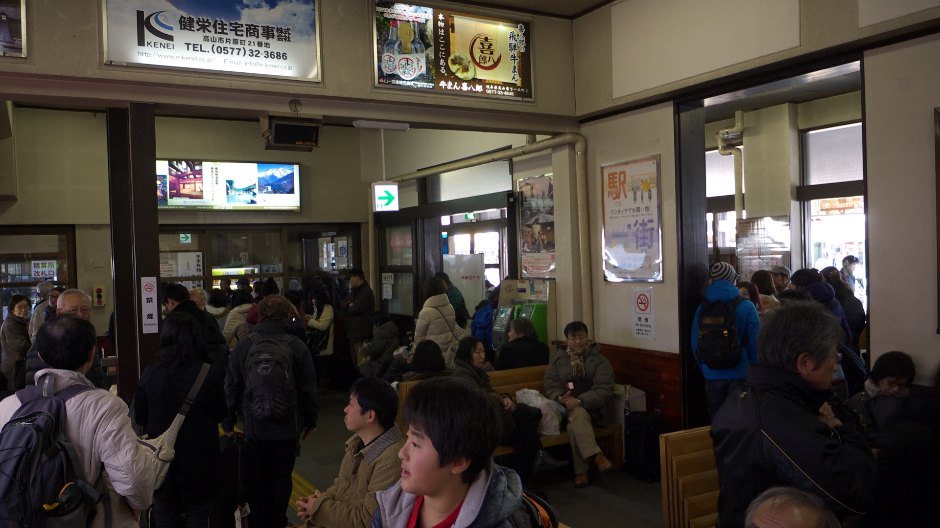 | ちょっと早い昼食は高山ラーメン | 高山の古い町並み | 陣屋前 | 帰省ラッシュなのか、正月観光なのか知らないが、人混みの高山駅構内 | ||||