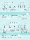 | とりあえず「高山」までの乗車券を買う。 | 1713C入線 7:51 | 下呂行きの1713Cの先頭車は国鉄色 美濃太田08:07-下呂09:41 |