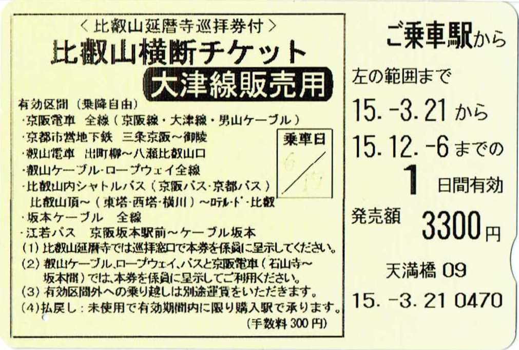 比叡山横断チケットでは鞍馬線に乗車できないので、出町柳まで行き「叡山電車フリーパス」を購入 | ||||