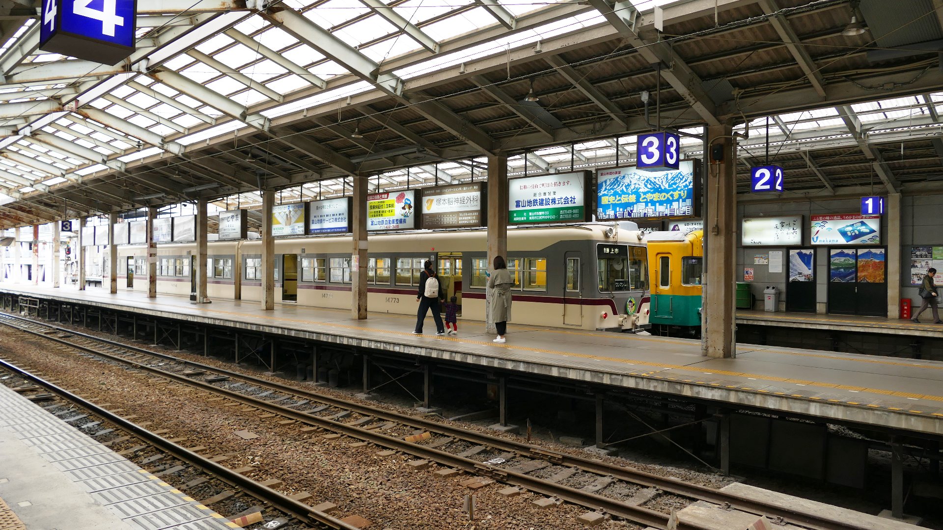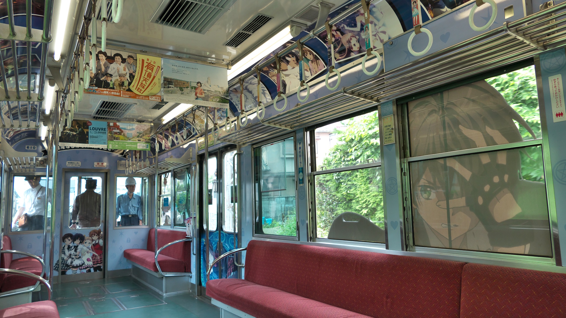| 浜大津にて、フリーパス購入。 | 京阪・石山坂本線。 石山寺の鉄道むすめ看板。坂本までをラッピング車両に乗る。 |