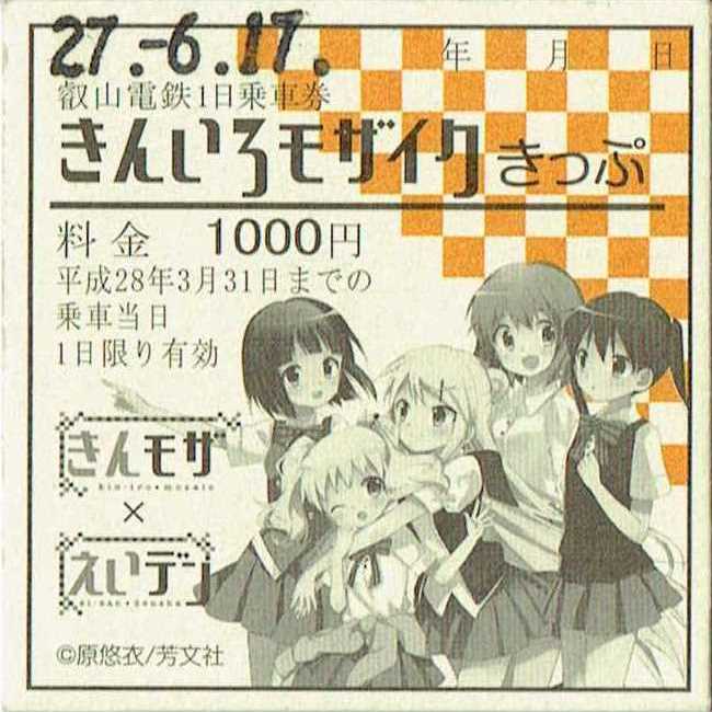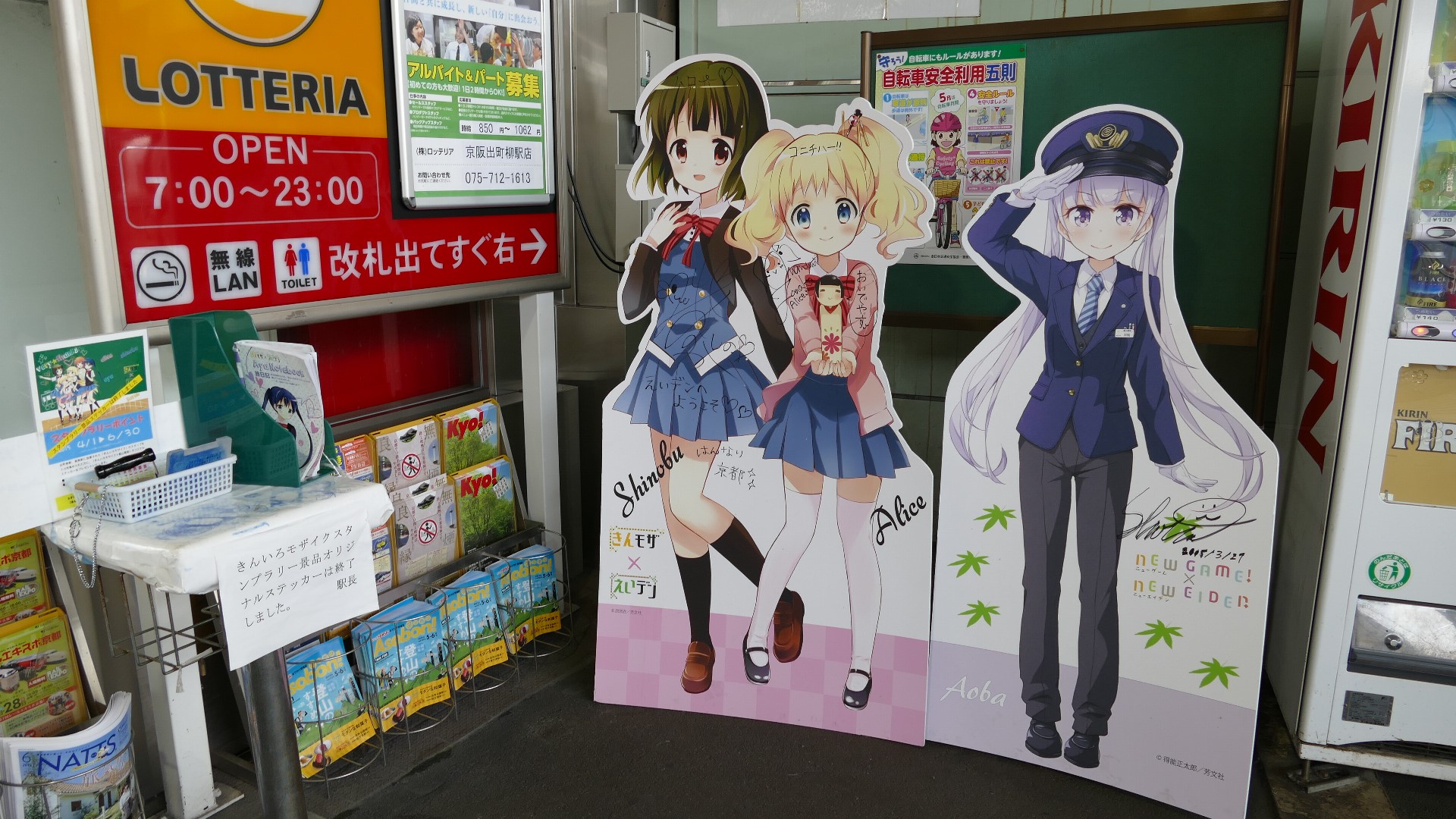 | 叡山電車・出町柳駅にて。 「ぎんいろモザイク」スタンプラリーしたが景品は終了だった。 |