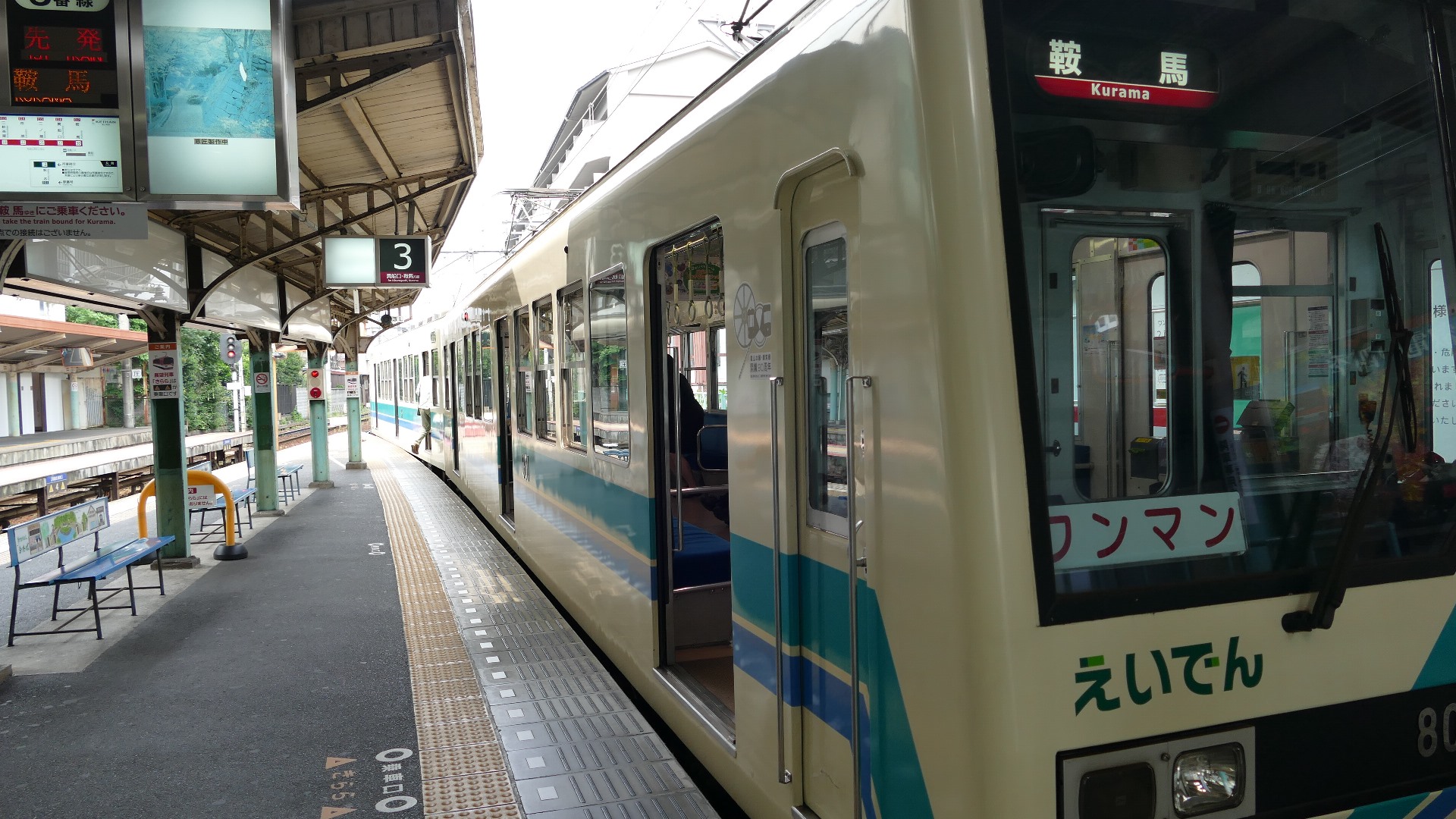 貴船口駅から鞍馬駅まで、展望列車「きらら」に乗る。 | |||||
