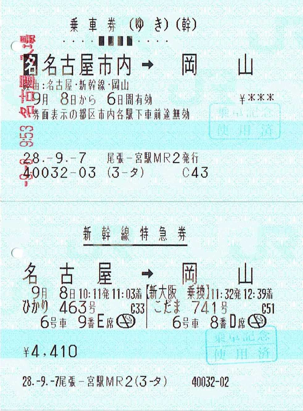 500系 TYPE EVAに乗って岡山市散策紀行 2016/9/8 JR西日本の「500 TYPE EVA 1号車 実物大コックピット搭乗体験」当選したので、500系EVAに乗って日帰りで岡山旅行を計画。往復新幹線を使うにあたり、車両と車種をすべて違うようタイプに乗るよう考え計画した。(JR西700系ひかり→500系こだま・N700系さくら→JR東海700系のぞみ) |