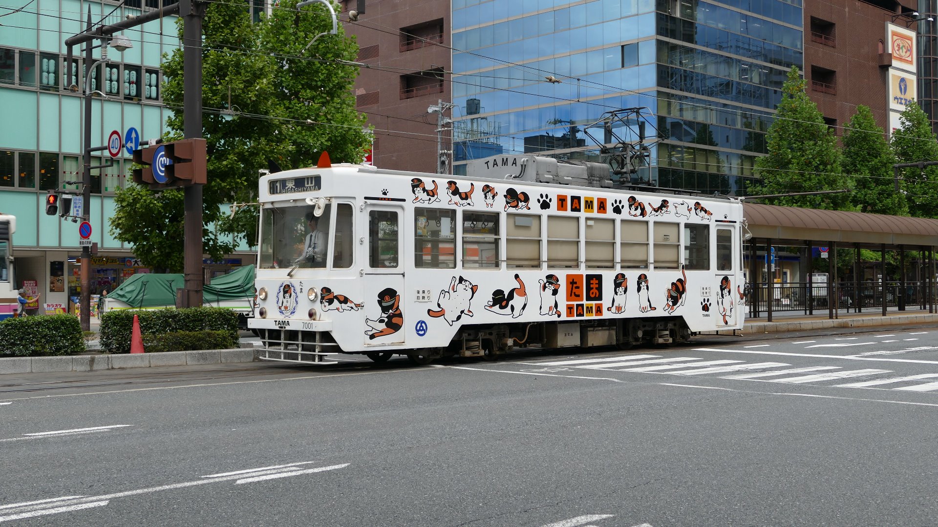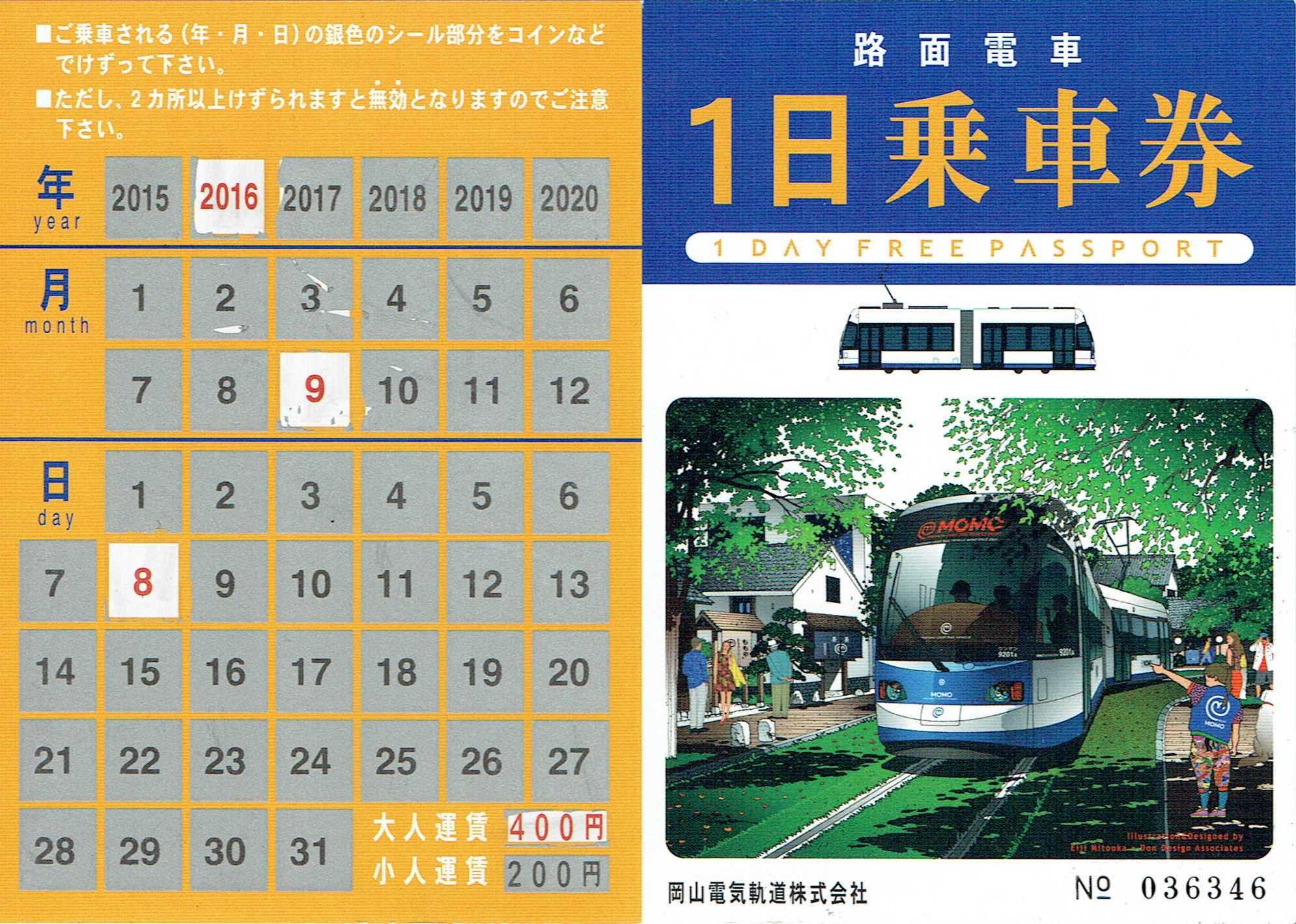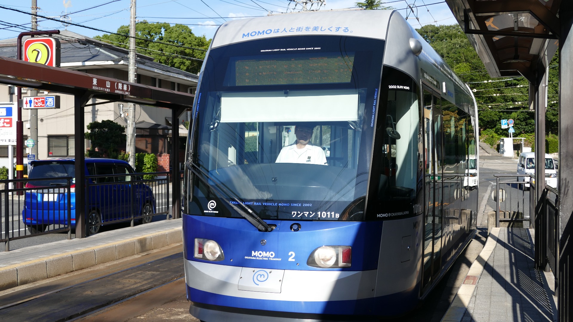 岡山電気軌道の1日乗車券で岡山城へ。 まずは「たま」電車 |