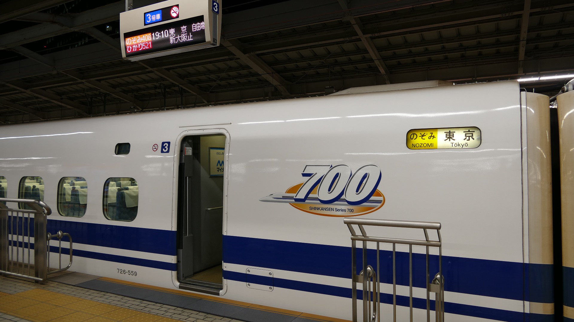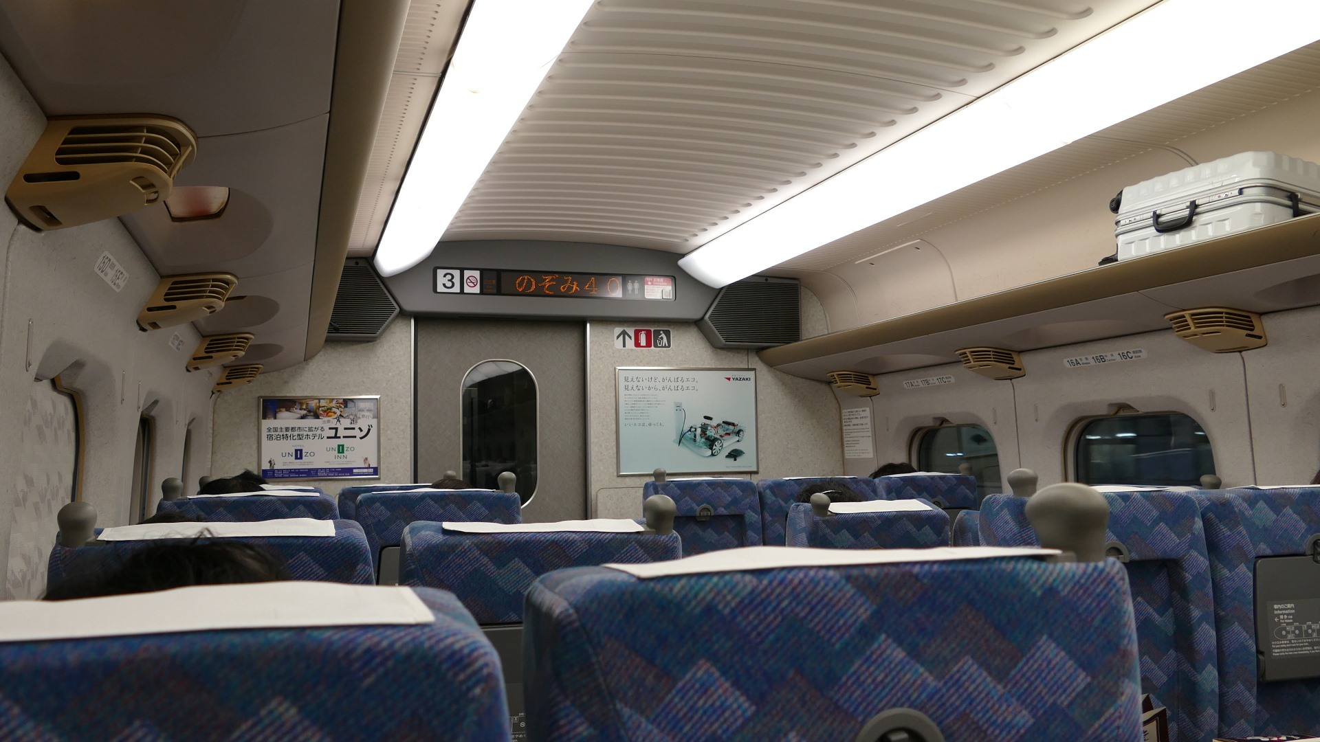 ☆新大阪→名古屋☆ JR東海700系のぞみ臨 自由席 座席モケットはブルー系統の明るいもの |