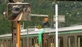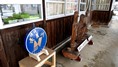 | 天竜二俣駅では大勢の人が下車。 | 天竜二俣駅臨時改札口。 腕木式信号機も展示してある。 |