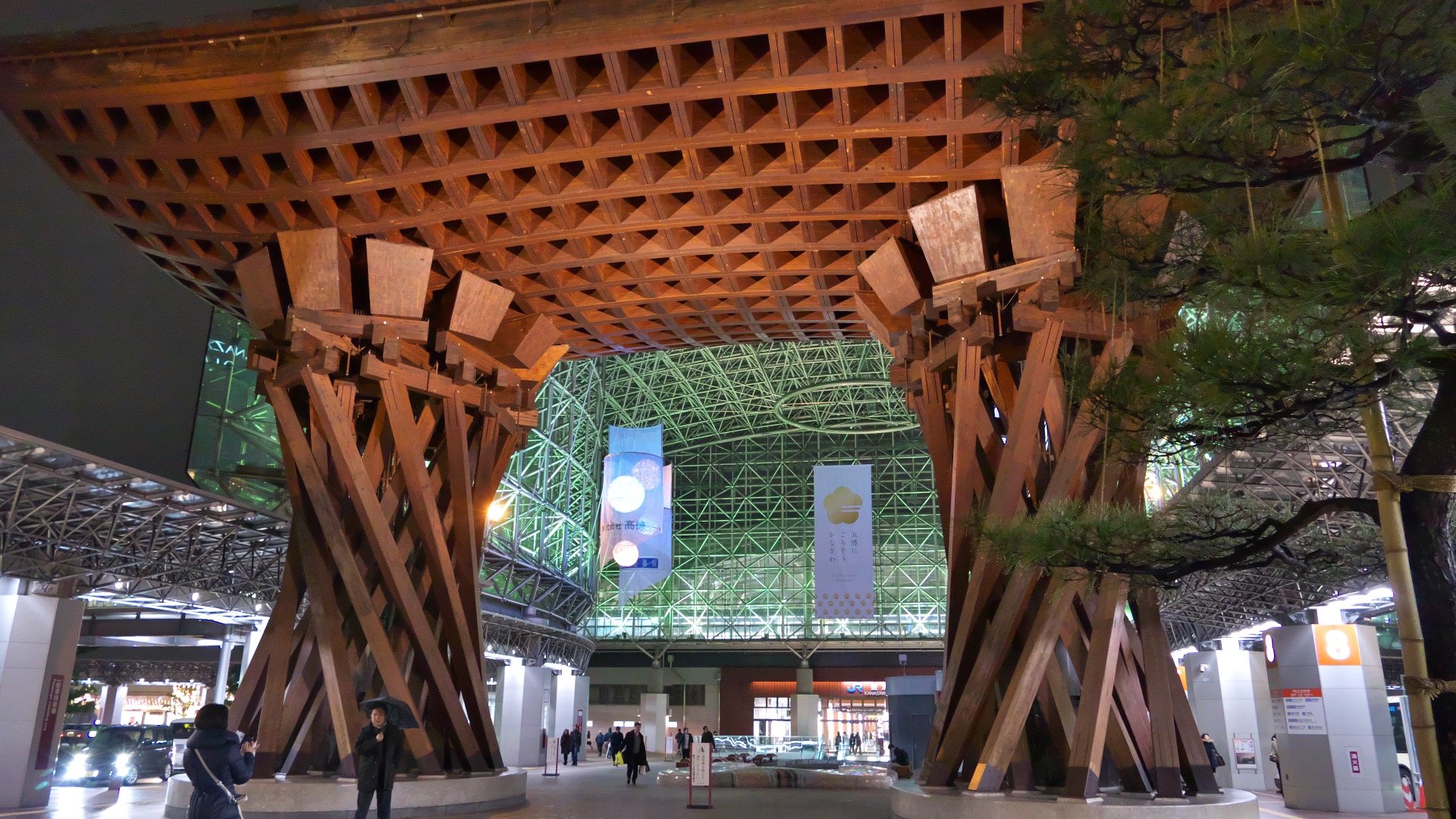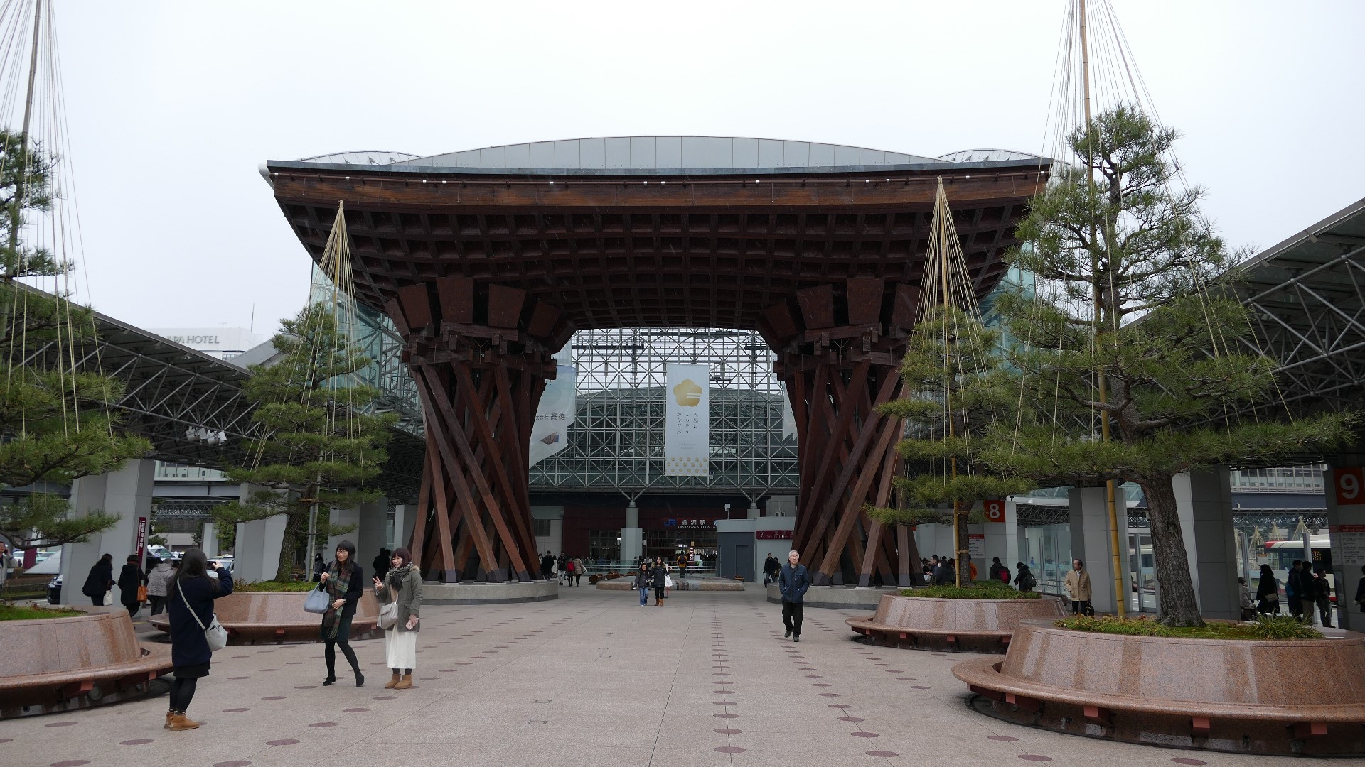 金沢到着 金沢駅 兼六園口・鼓門 駅舎の頁で詳しく |