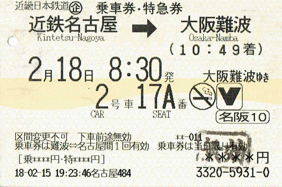 | 名鉄から乗り換え改札では近鉄切符を入れてから名鉄乗車分のスイカをタッチ。名阪まる得きっぷが廃止となり、最後の引換特急券。車内は津あたりから満席に。 | 岸和田駅、商店街の中に「コシノジュンコ洋裁店」あり、また泉州国際マラソンやっていた。 | 立派な岸和田城 | |||||