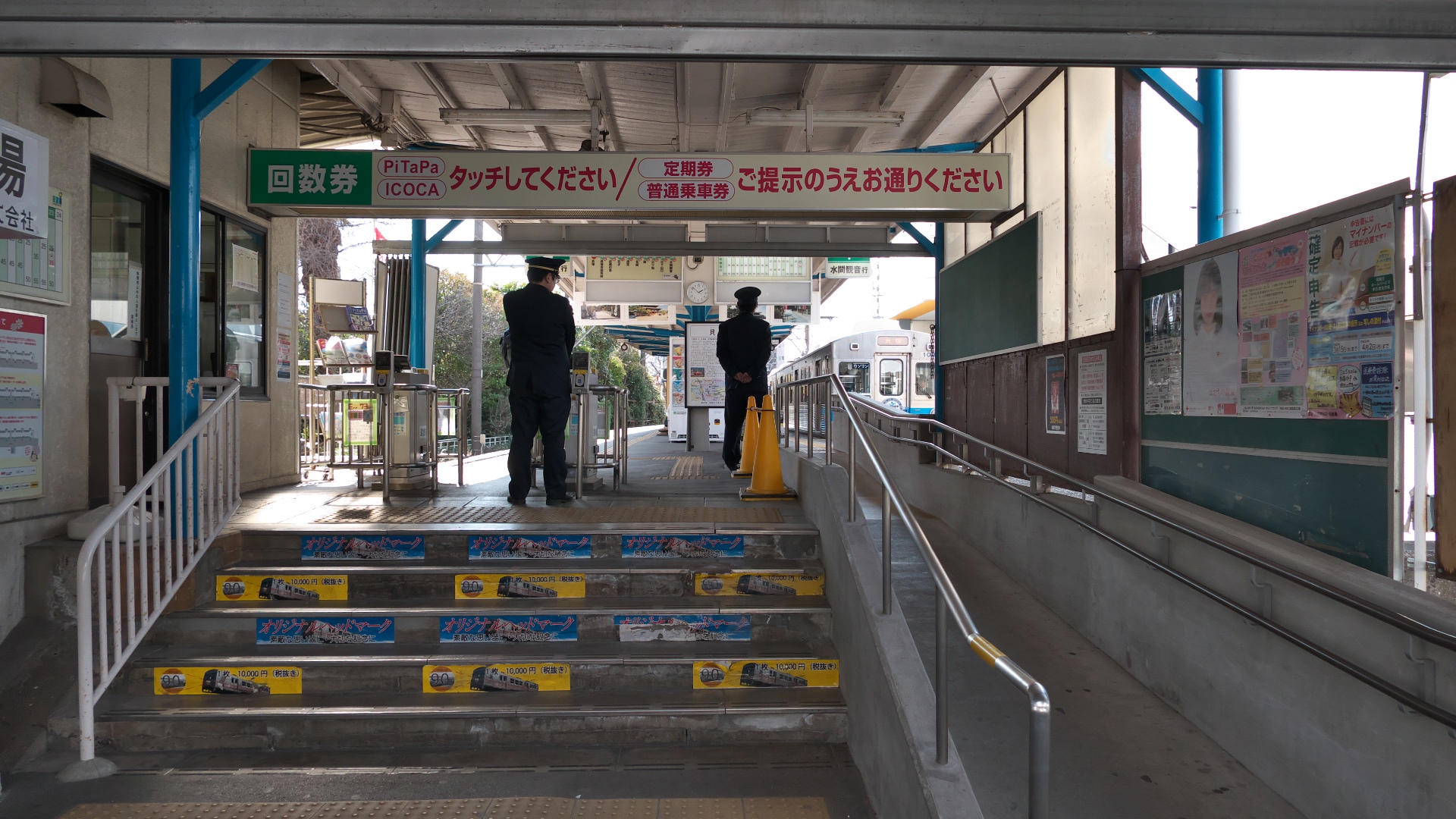 レトロな南海 蛸地蔵駅駅舎。南海格安乗車券自販機 | |||||