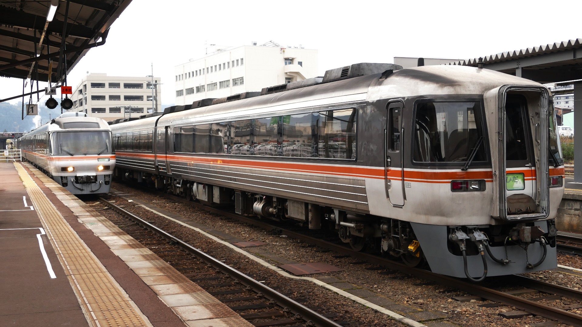 ワイドビューひだ3号は高山で切離し | 前三両は富山行き | 高山駅 | ||||