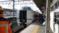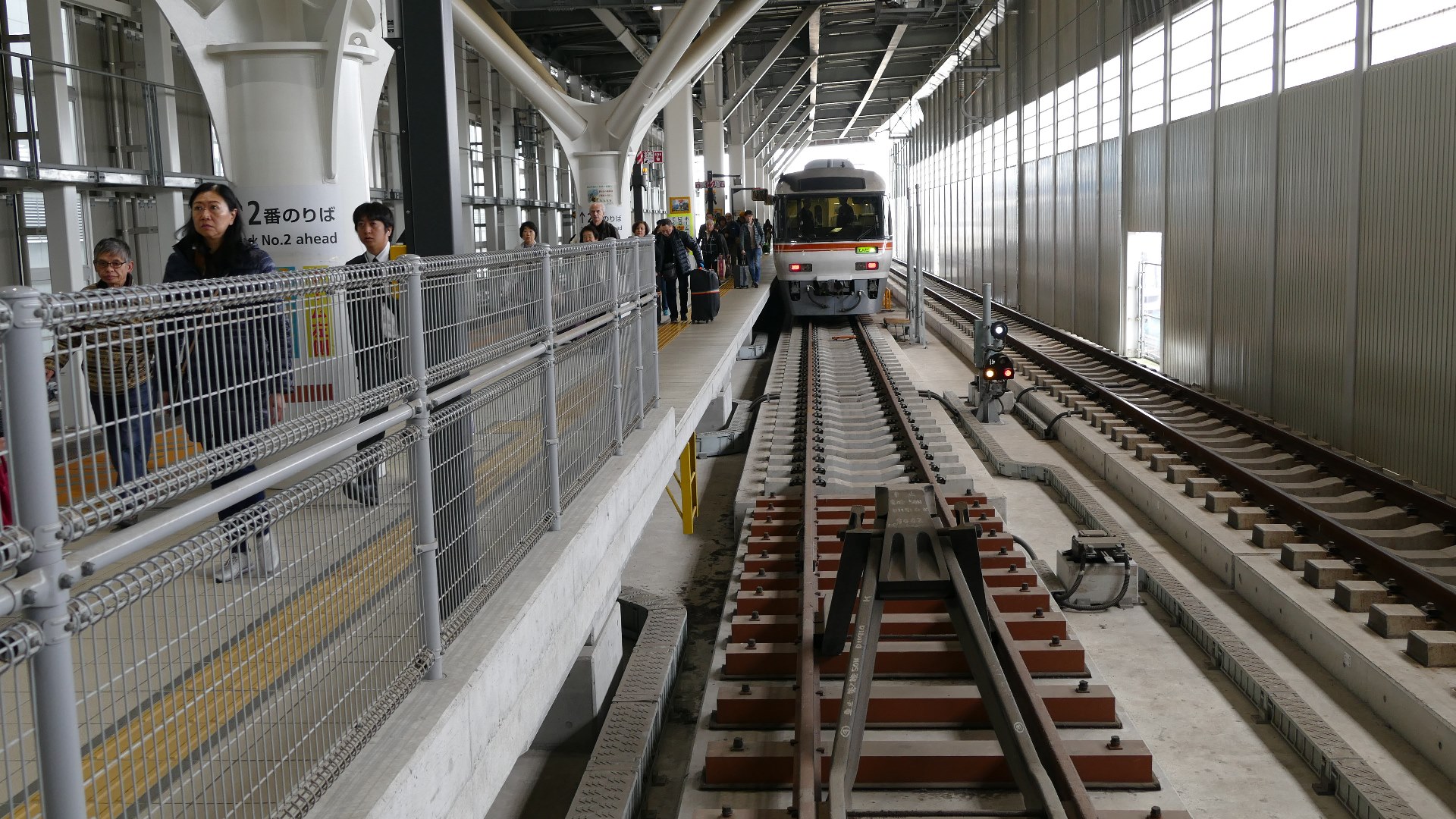 富山駅到着 新幹線ホーム あいの風とやま鉄道 キハ120 |