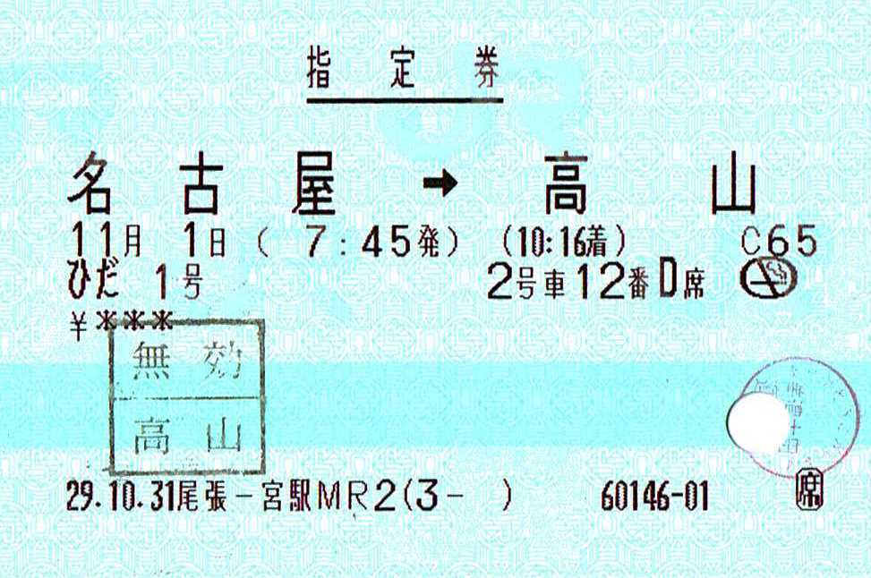 | 高山駅で乗車券と特急券を買う。 | 高山始発ワイドビューひだ10号は 行きと違って激混み |