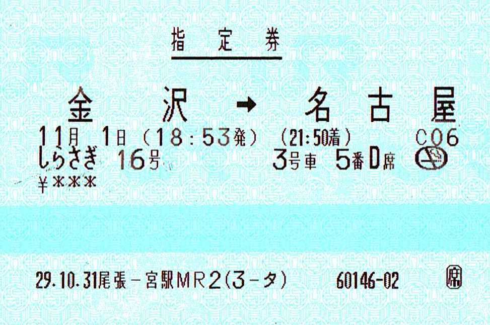 金沢2006→米原2201 しらさぎ66 米原から新幹線にて帰路 |