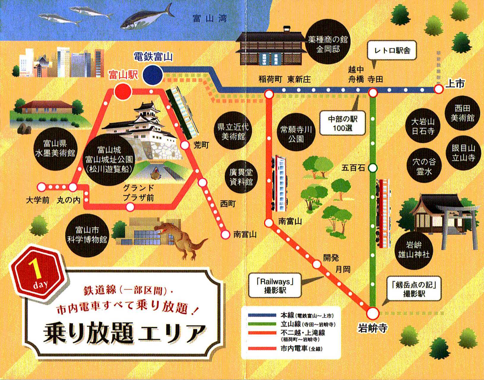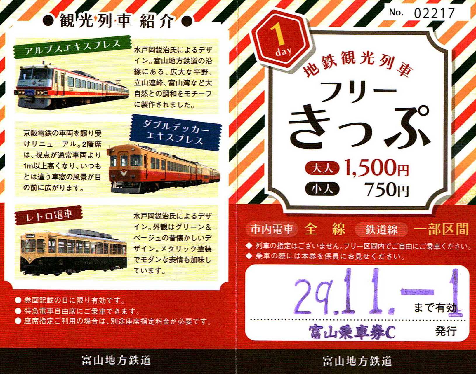富山地方鉄道 区間限定フリーきっぷ購入。購入記念にカードもらえた。 | ||||