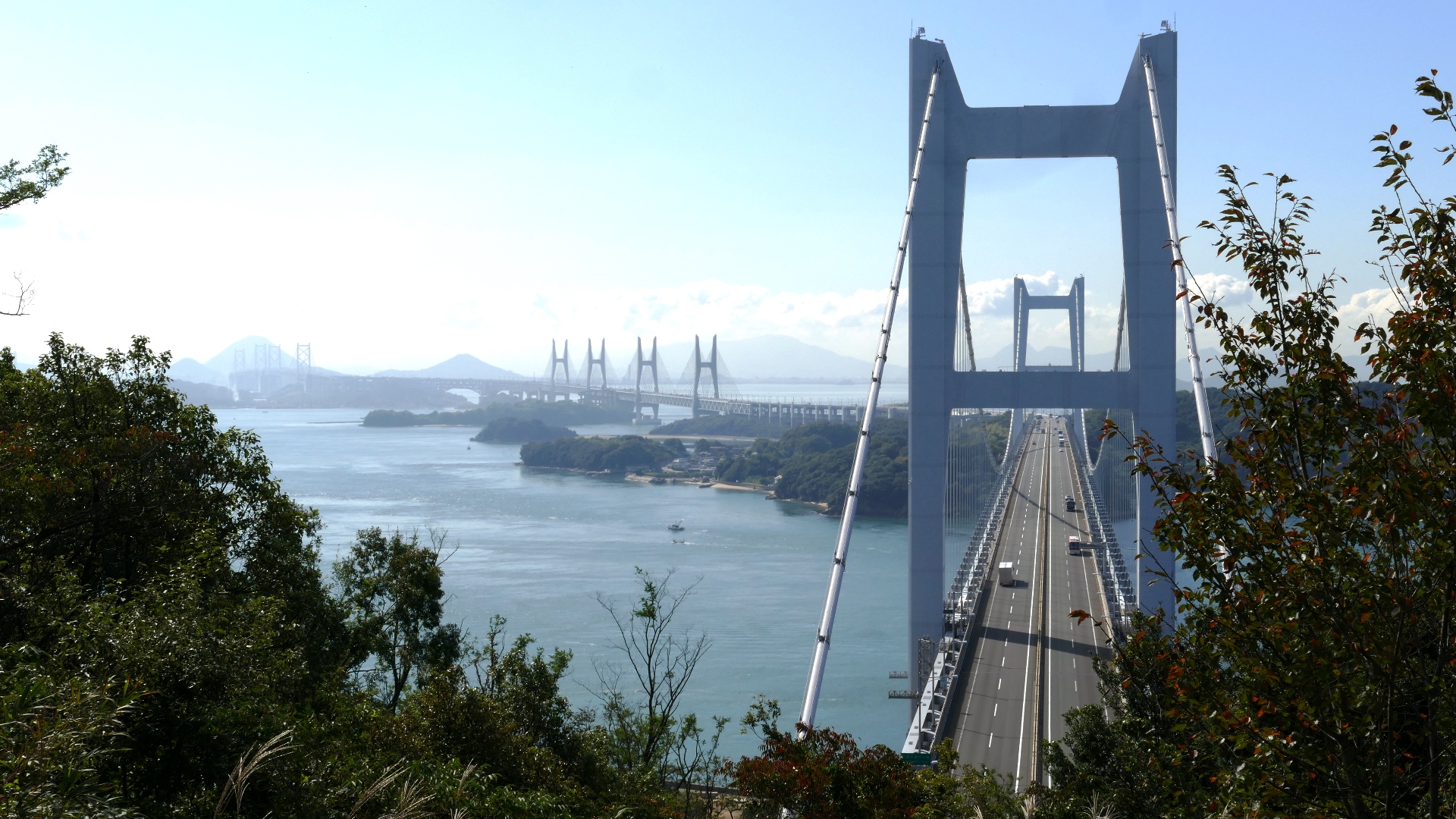 | 児島でレンタカーを借りる。鷲羽山から瀬戸大橋の眺望を堪能。児島・下電ホテル前には下津井電鉄で活躍した車両が保存されている。瀬戸中央道与島PAで讃岐うどんを食す。 | 丸亀城。重要文化財の現存天守 | 四国側(瀬戸大橋公園)から見る瀬戸大橋。 | |||||