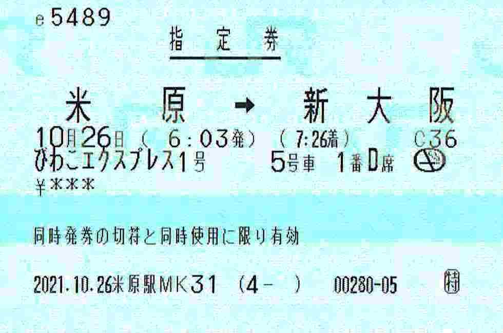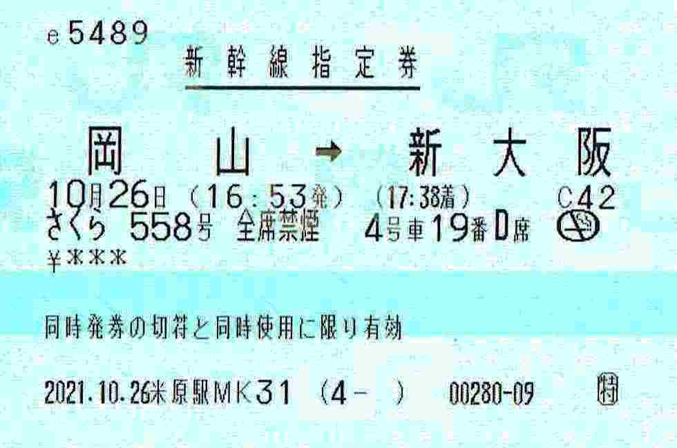 ☆新大阪→岡山☆ 500系こだま741号 TYPE EVA 6号車指定(G格下車) 2+2の座席設定 |