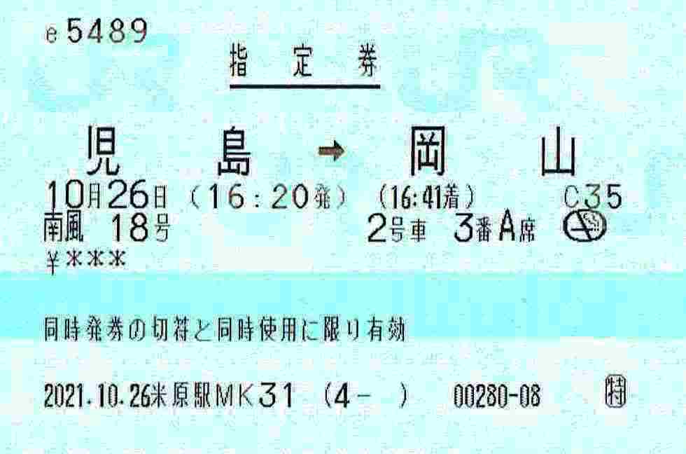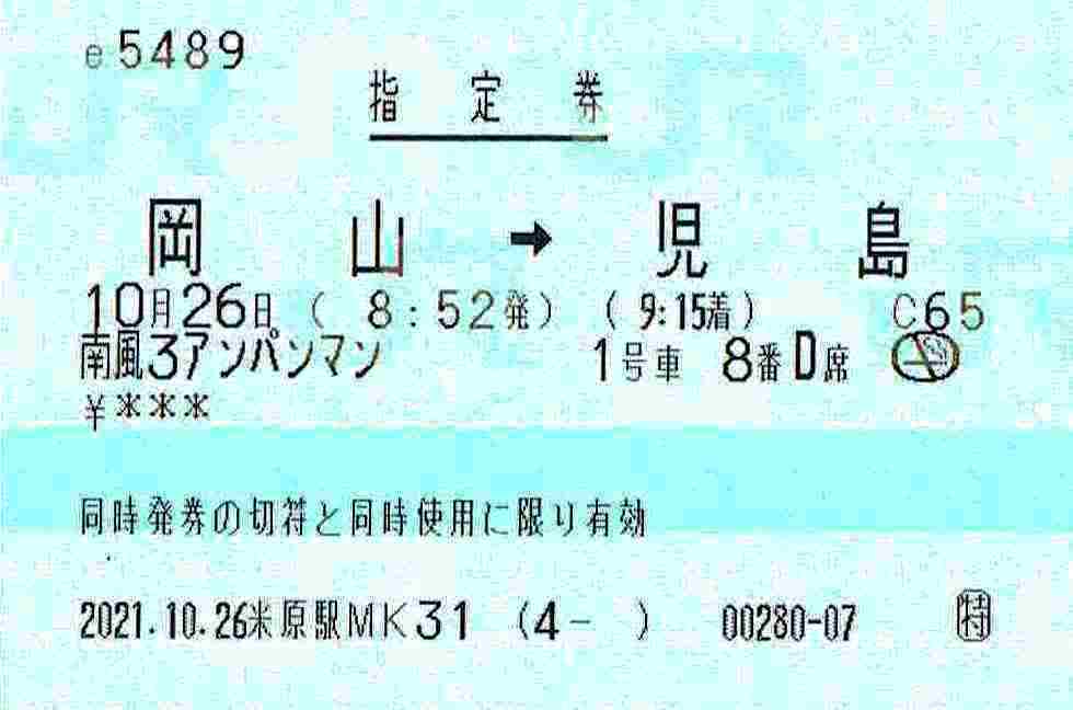 | 当日はデニムの日で、児島駅記念入場券を購入。駅はコインロッカーもデニム柄。 | 帰りもアンパンマン列車、普通指定席 | さくら558号 | 京都までサンダーバード39号。米原まで新快速で帰郷。 | ||||