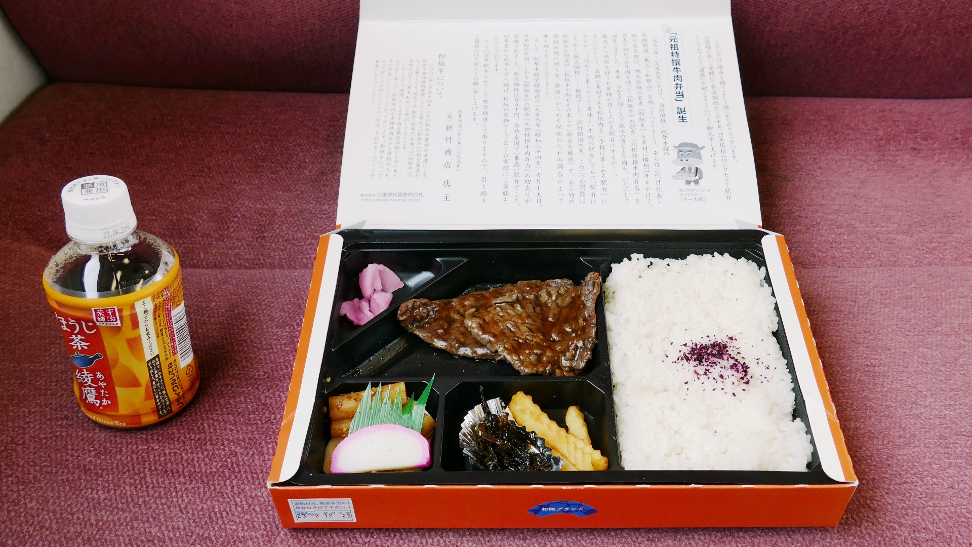 | 青空フリーパス 2,620円 | 快速みえで松坂へ。新竹本店で 復刻版パッケージ牛肉弁当を買う。 |