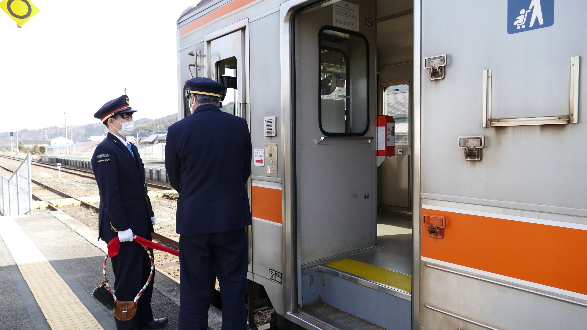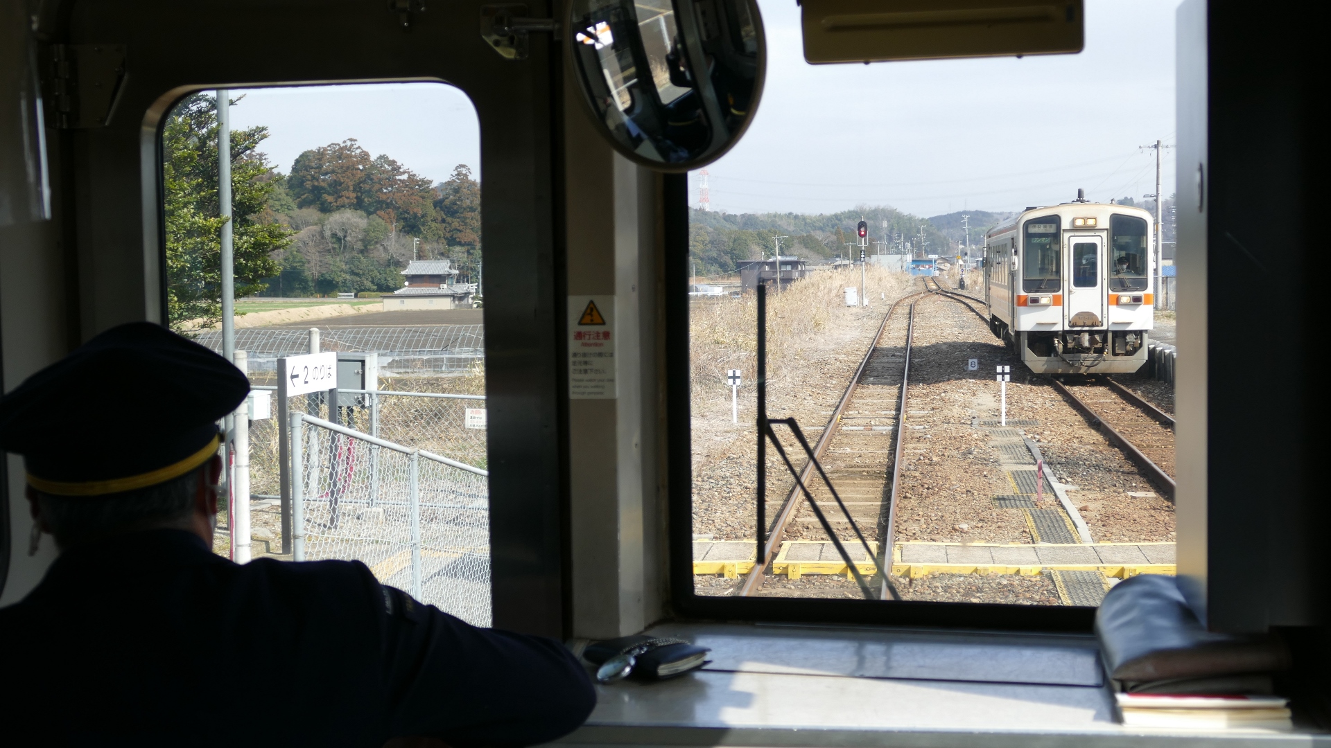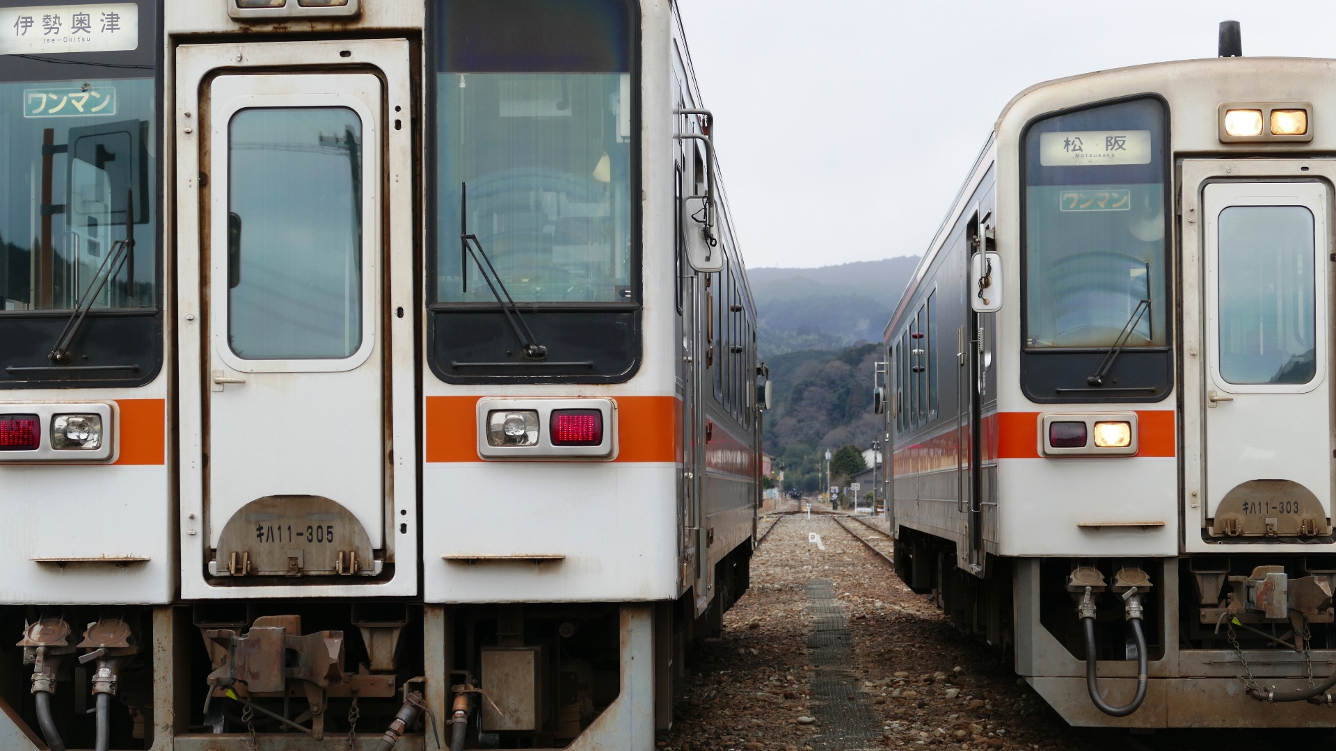 松阪938-伊勢奥津1102 家城駅で列車交換 |