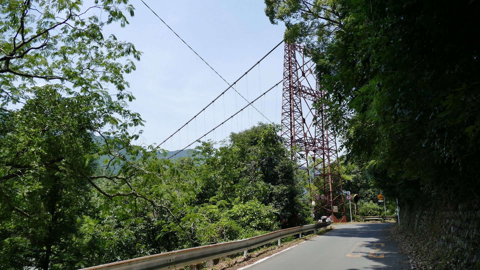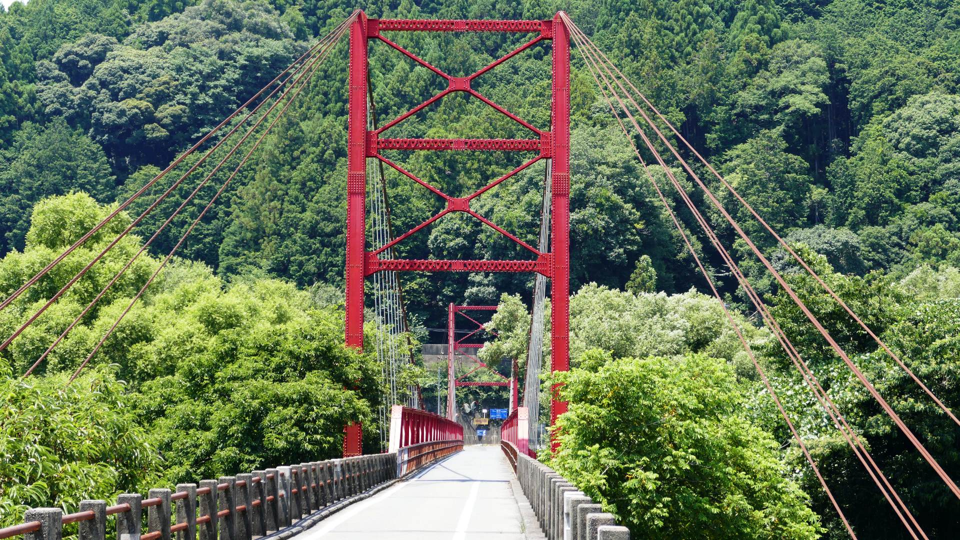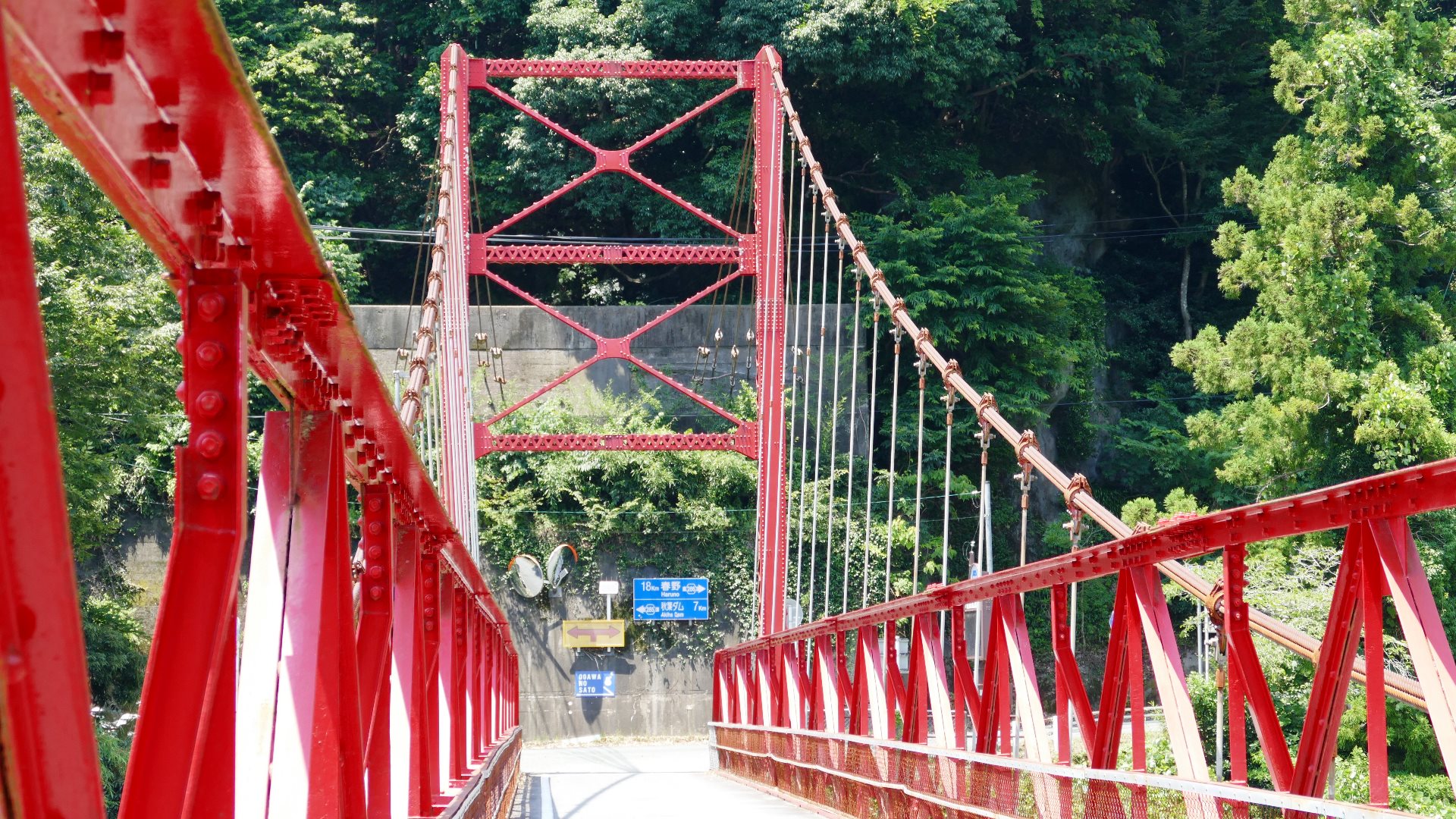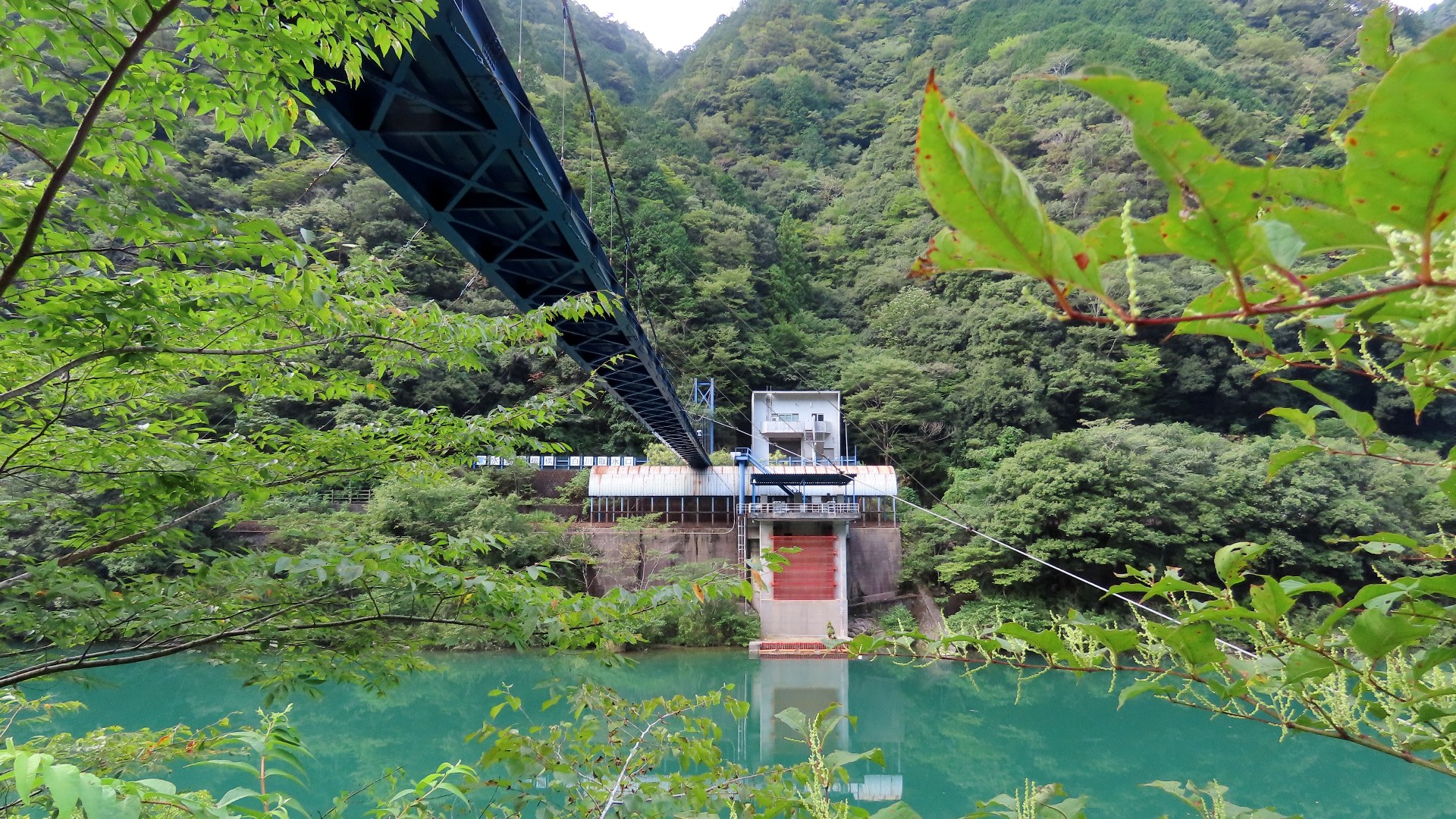 | 風屋ダム北部にある集落と二村小学校(現廃校)とつなぐ生活橋。橋長62m。 橋を渡ったすぐ先は何とトンネルになっている。 |