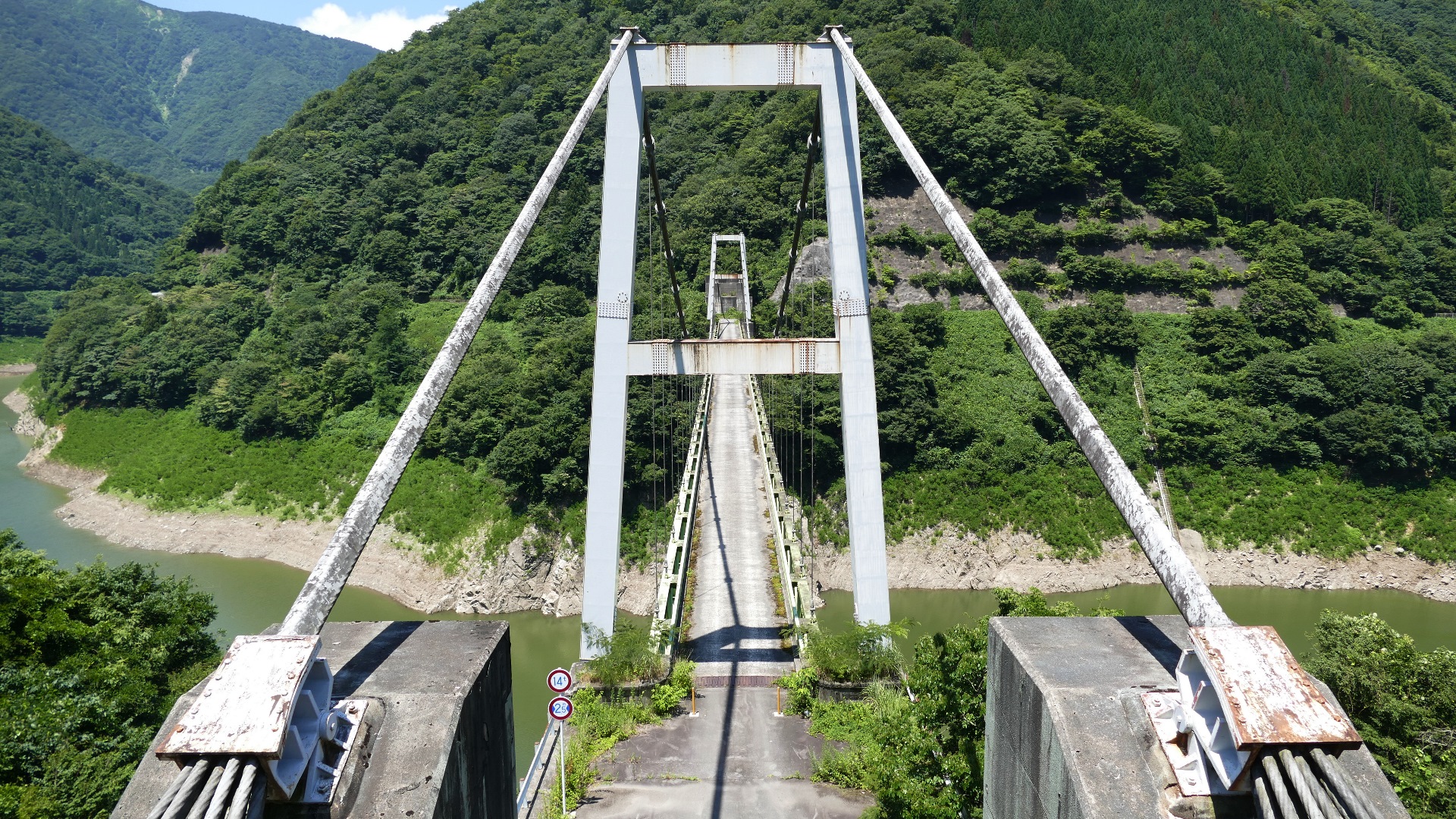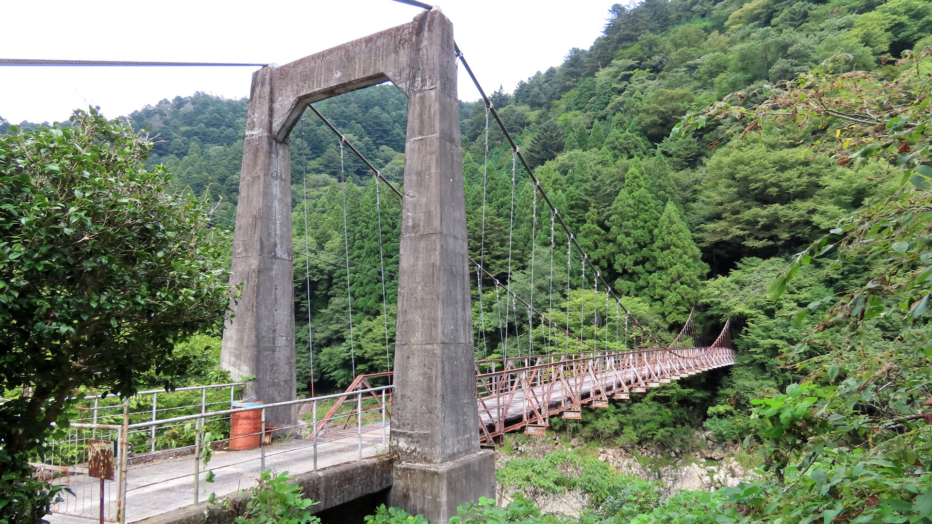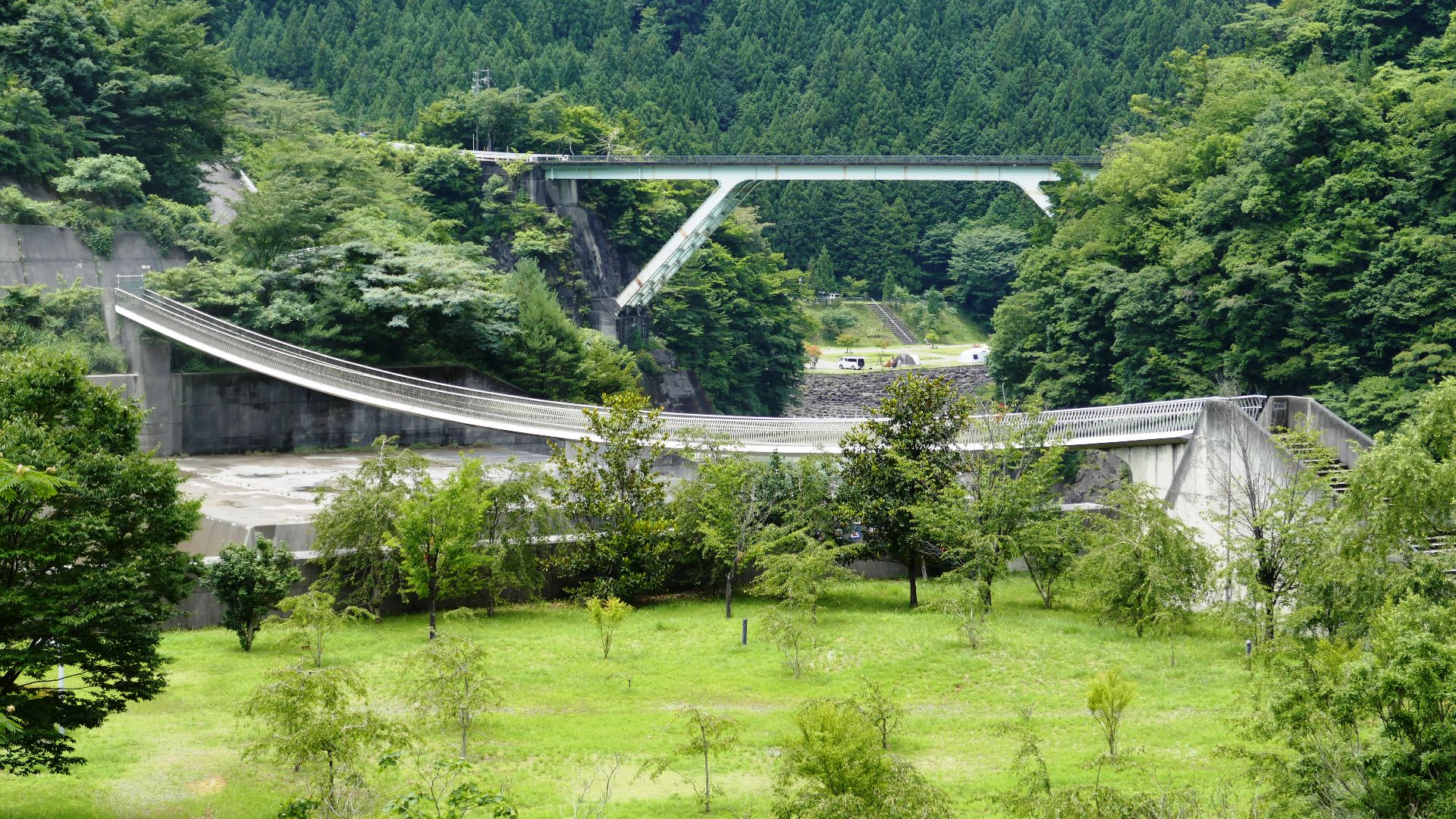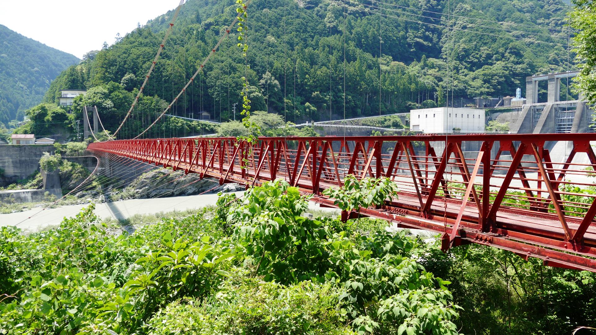 国道168号から対岸の集落へ渡る生活橋。橋長109m 高さ13m。 | ||||||