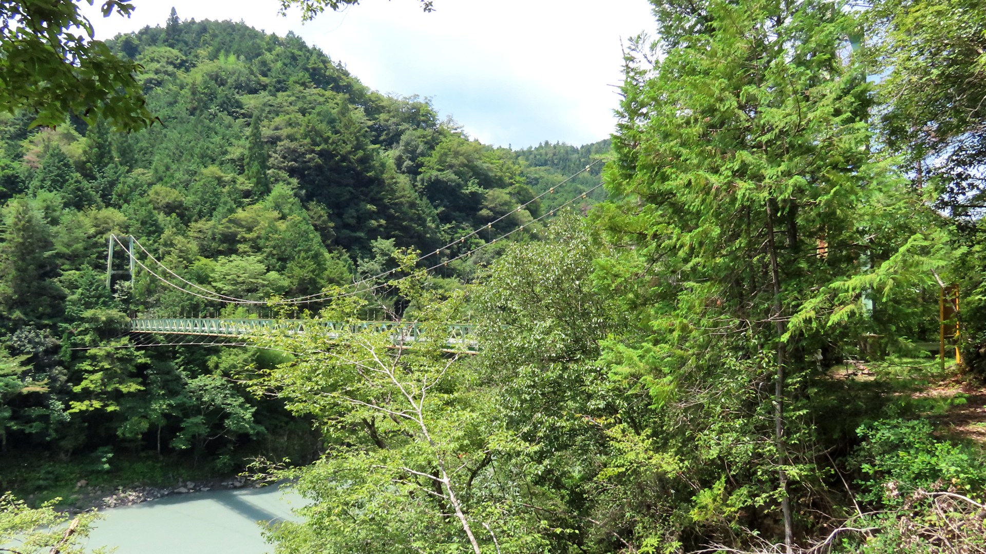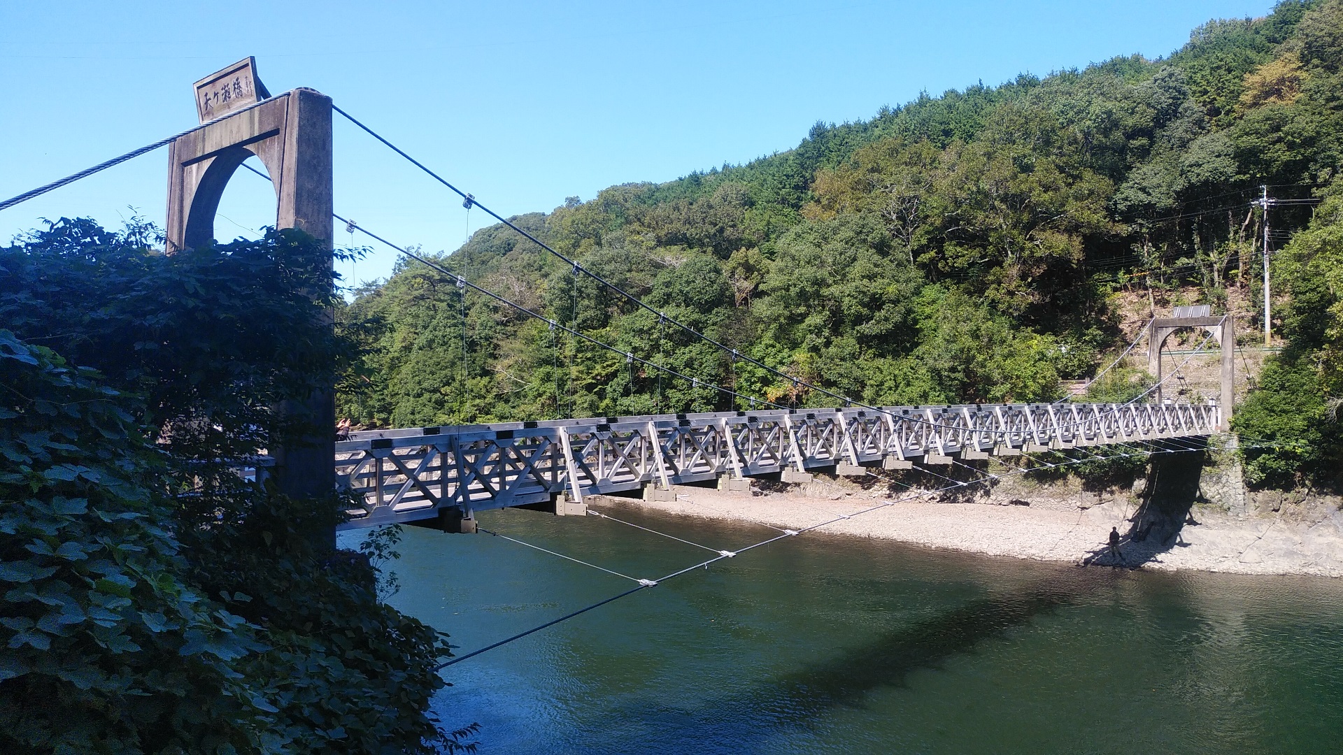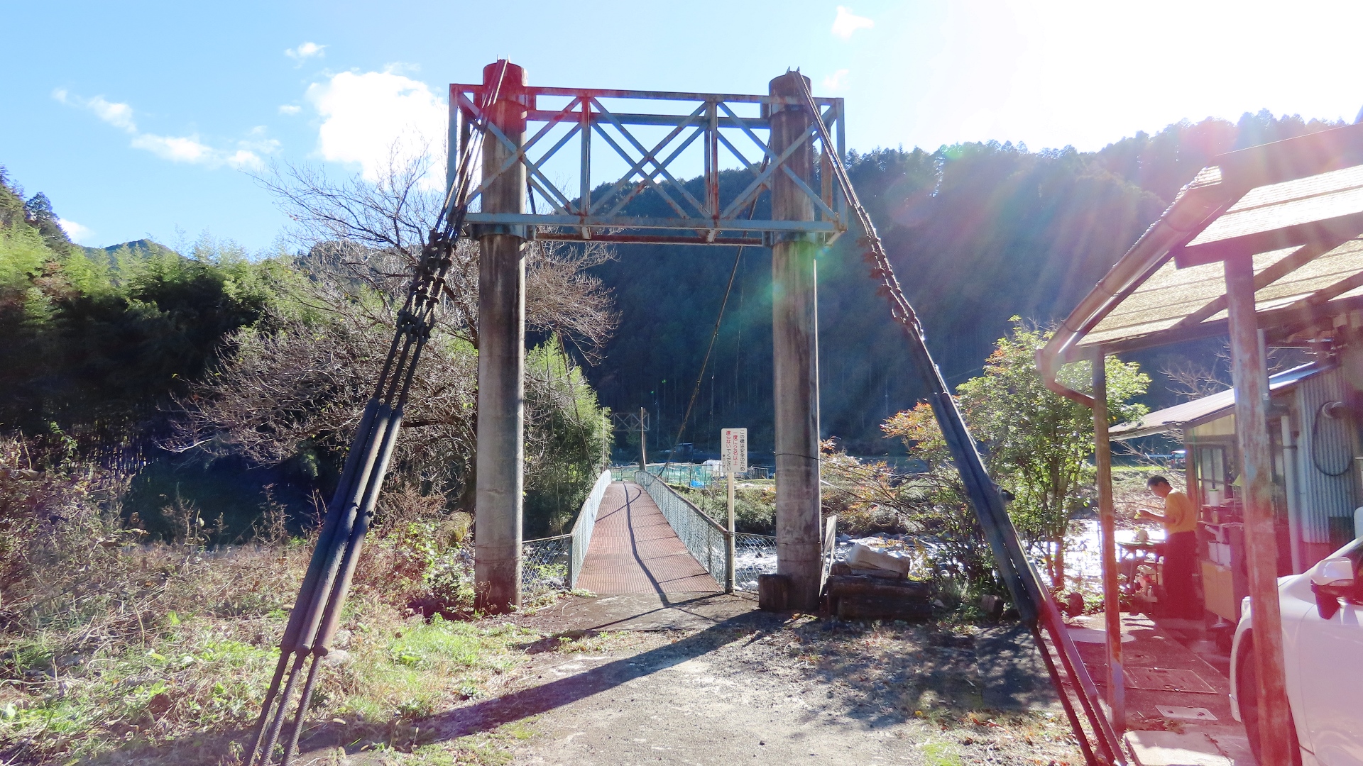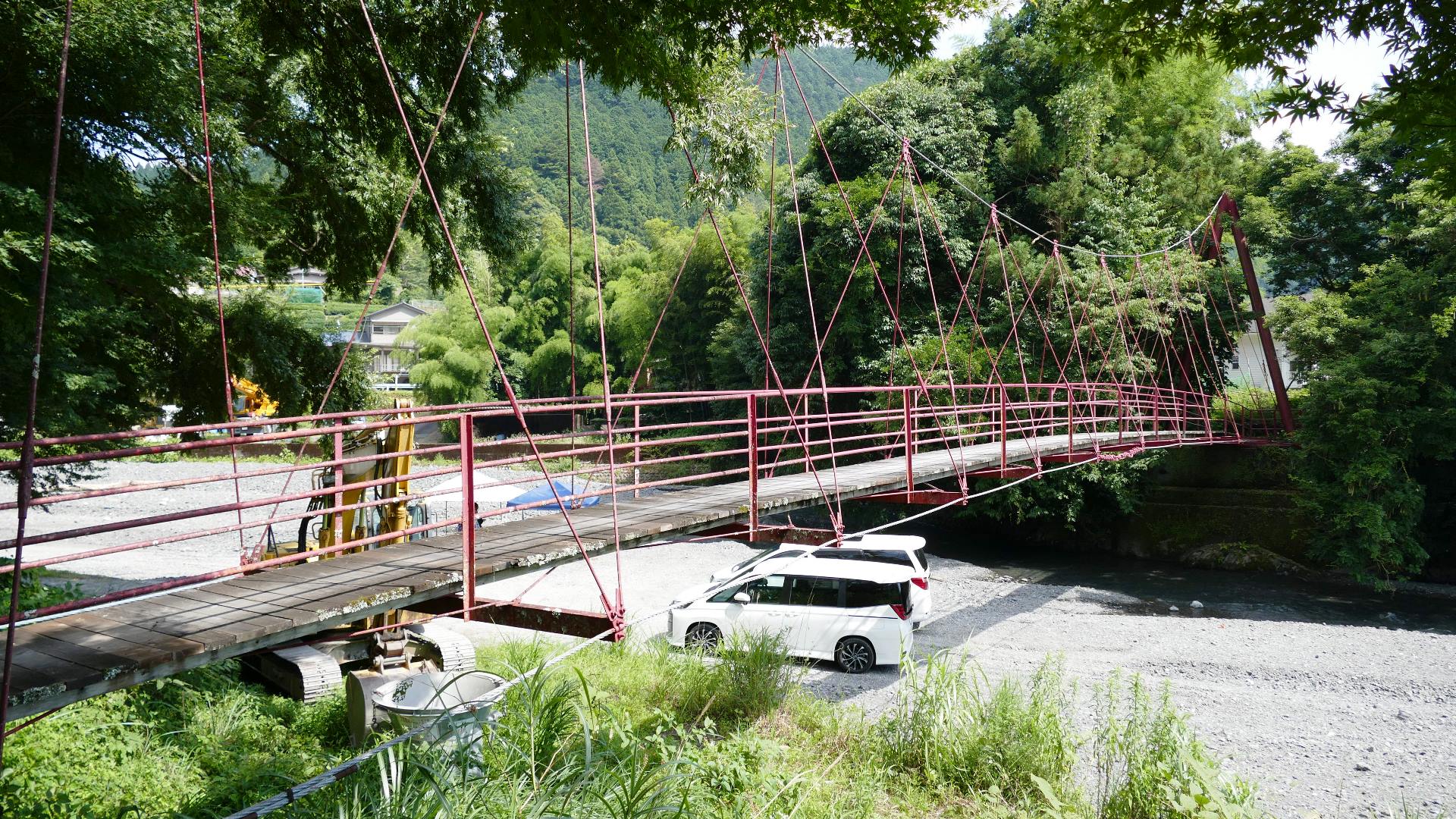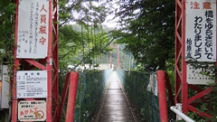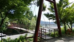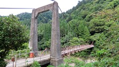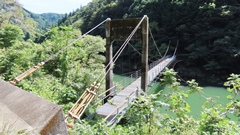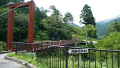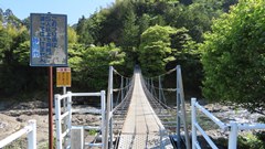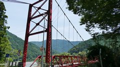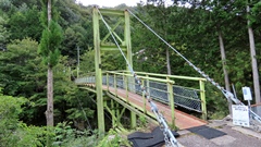| 入志摩橋の約4.5km上流に架かる全長約50mの吊橋。 キャンプ場一角にある吊橋みたいで、それまでのと比べて安定感ある。 |