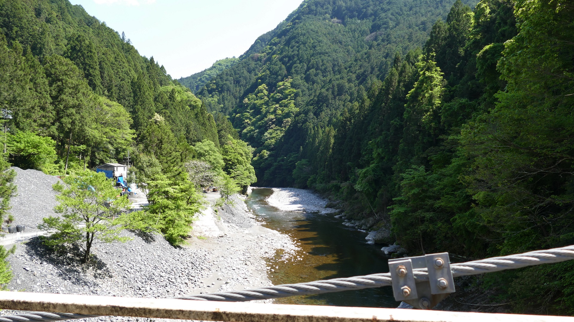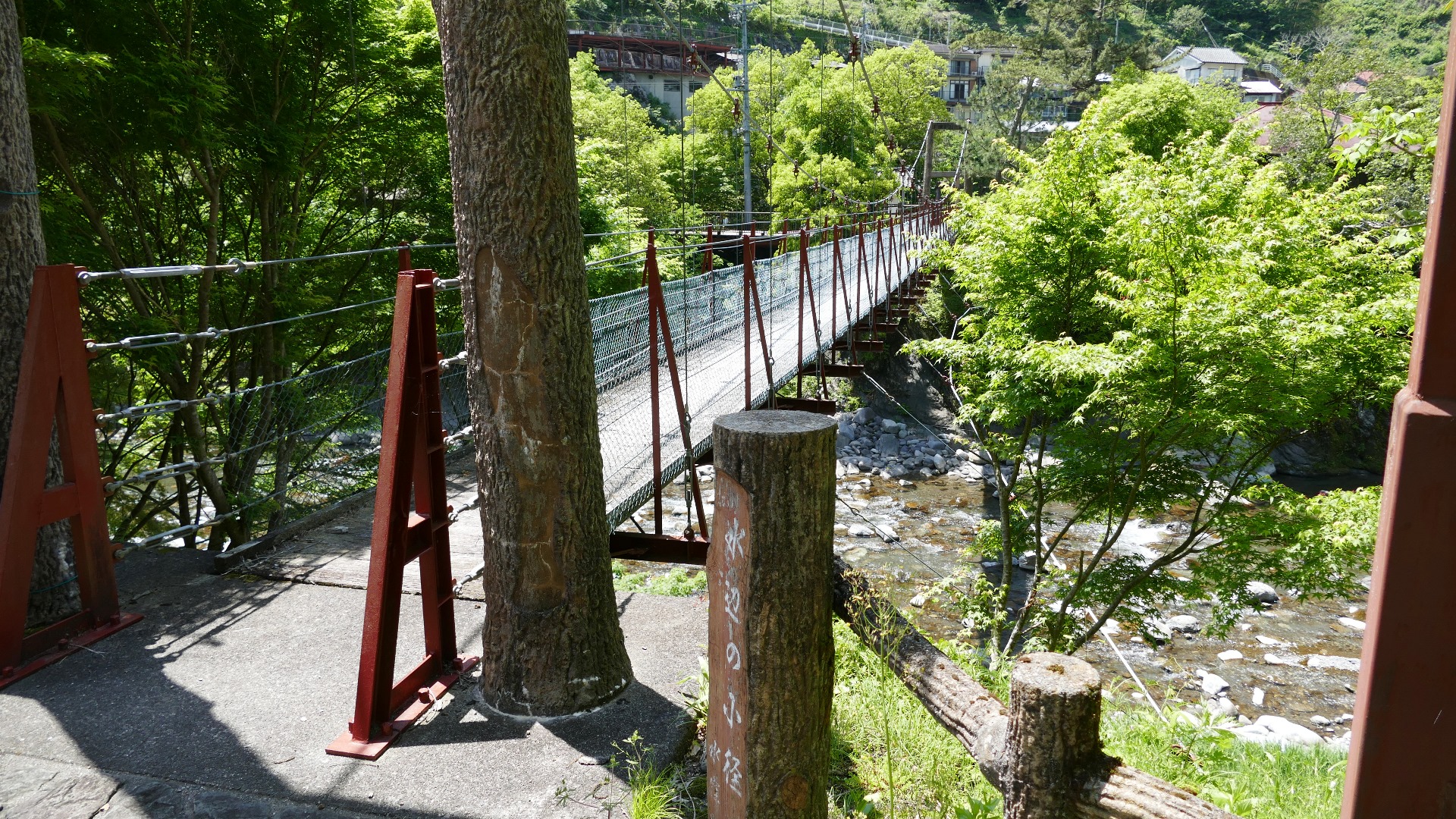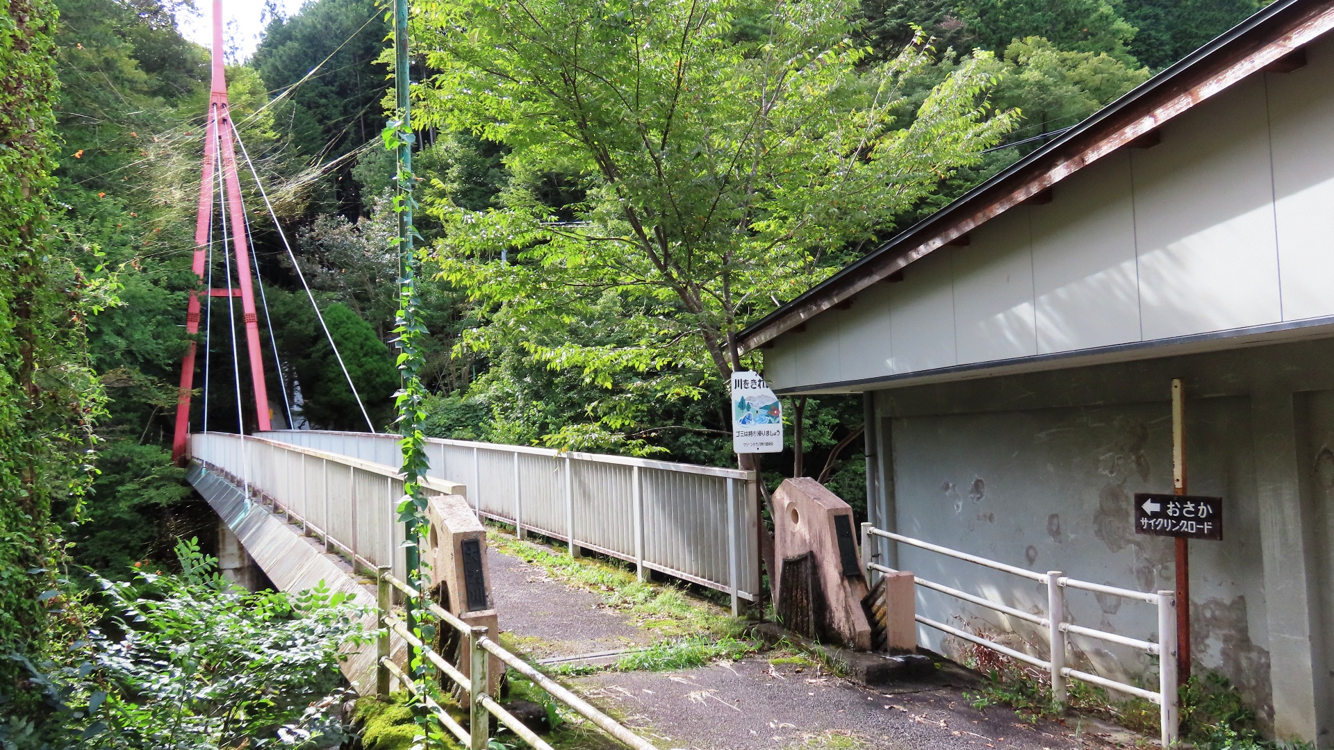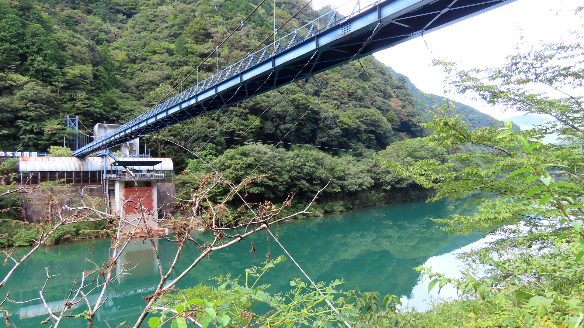 | 入志摩橋の約4.5km上流に架かる全長約50mの吊橋。 キャンプ場一角にある吊橋みたいで、それまでのと比べて安定感ある。 |