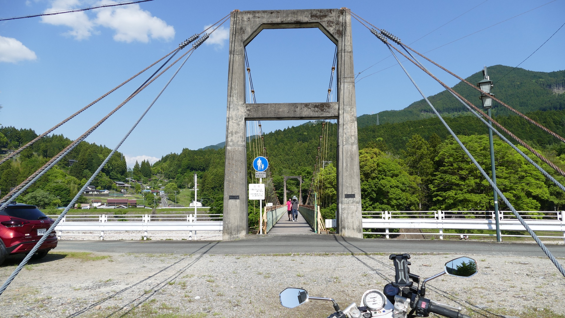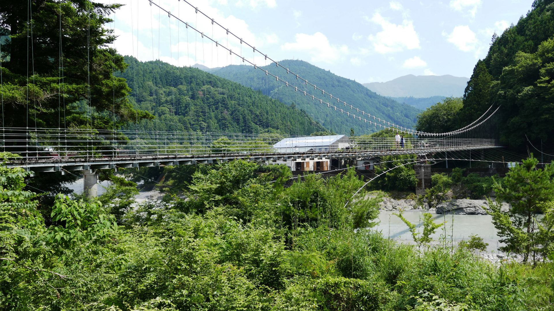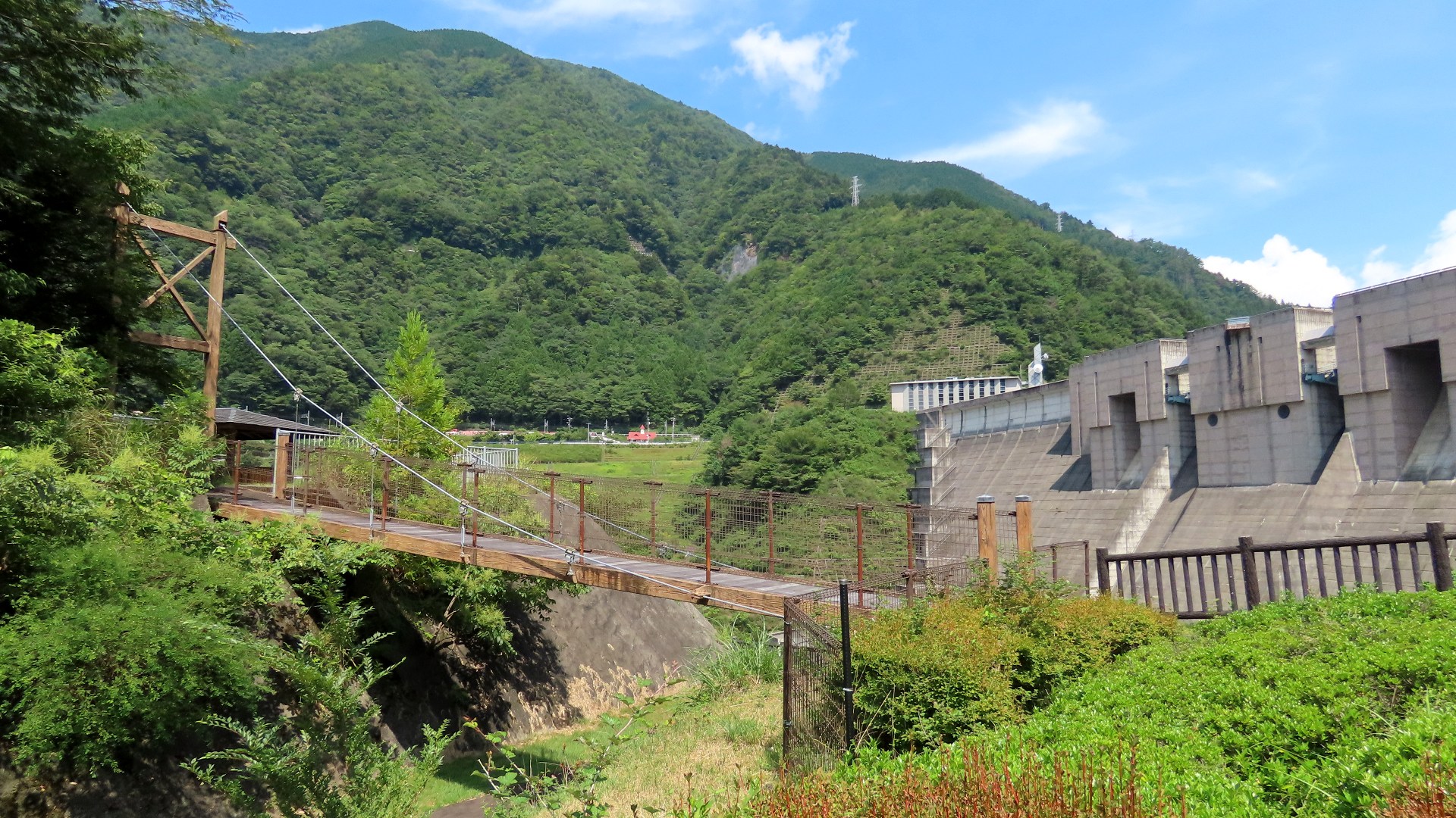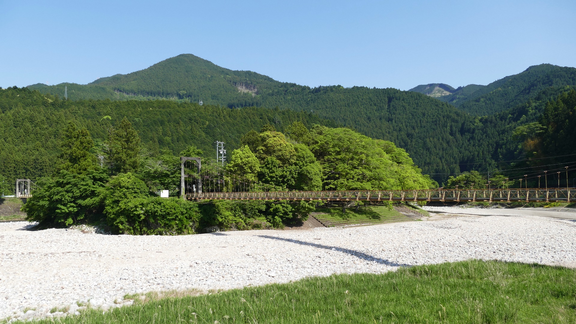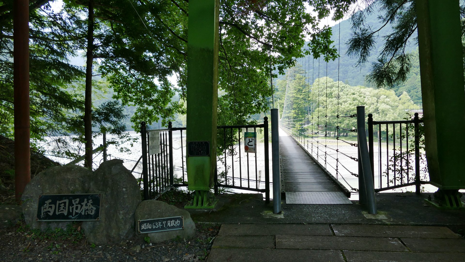 | 入志摩橋の約4.5km上流に架かる全長約50mの吊橋。 キャンプ場一角にある吊橋みたいで、それまでのと比べて安定感ある。 |