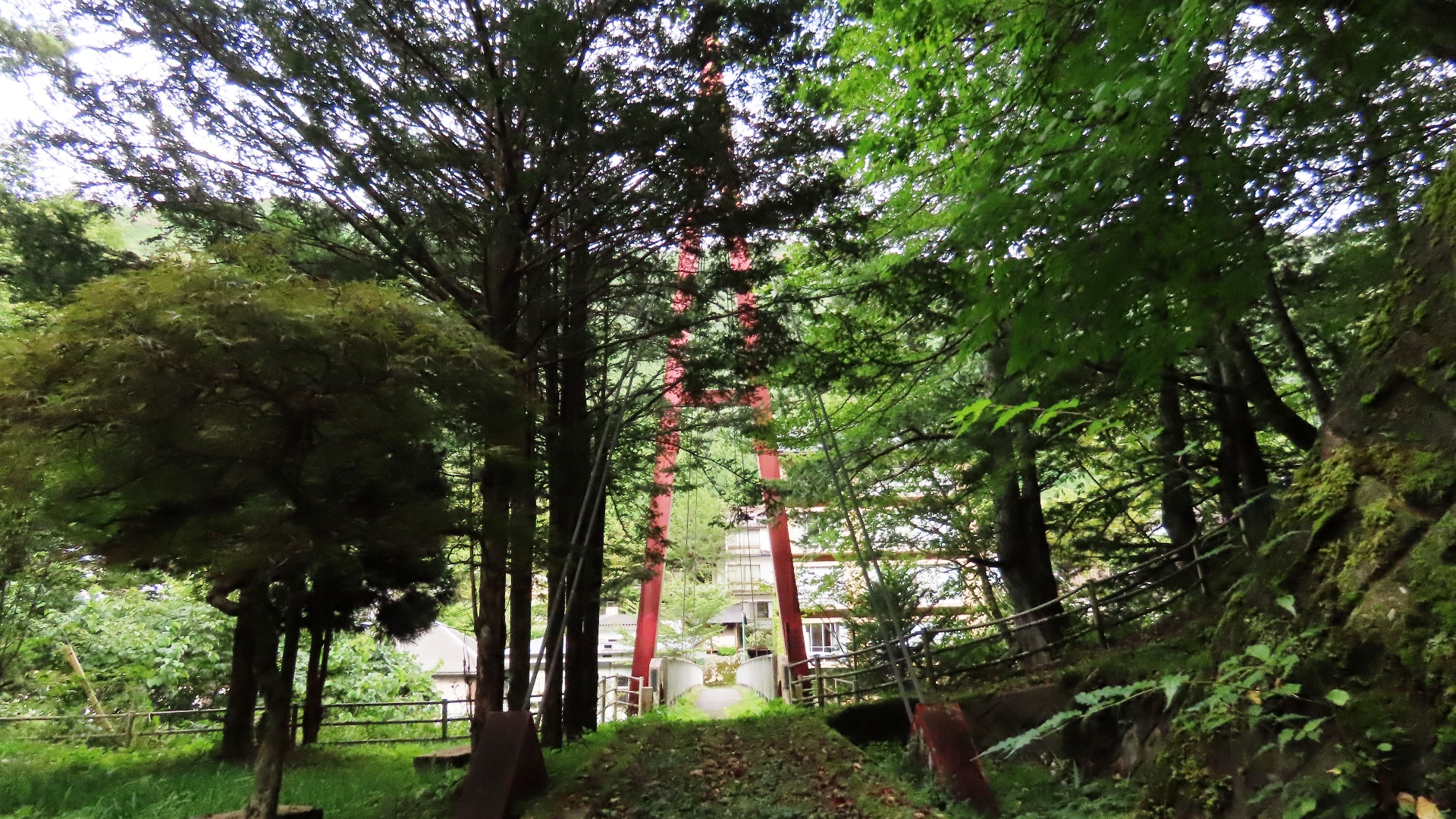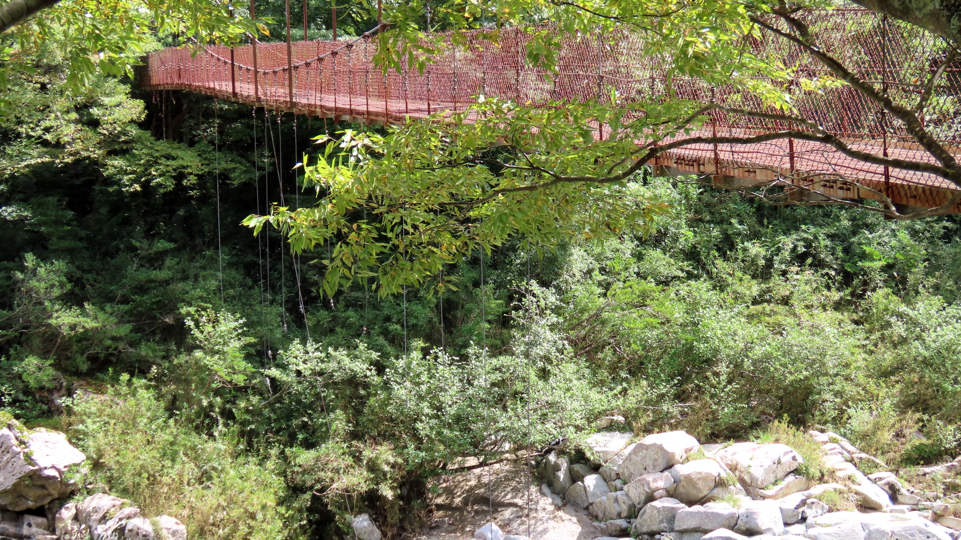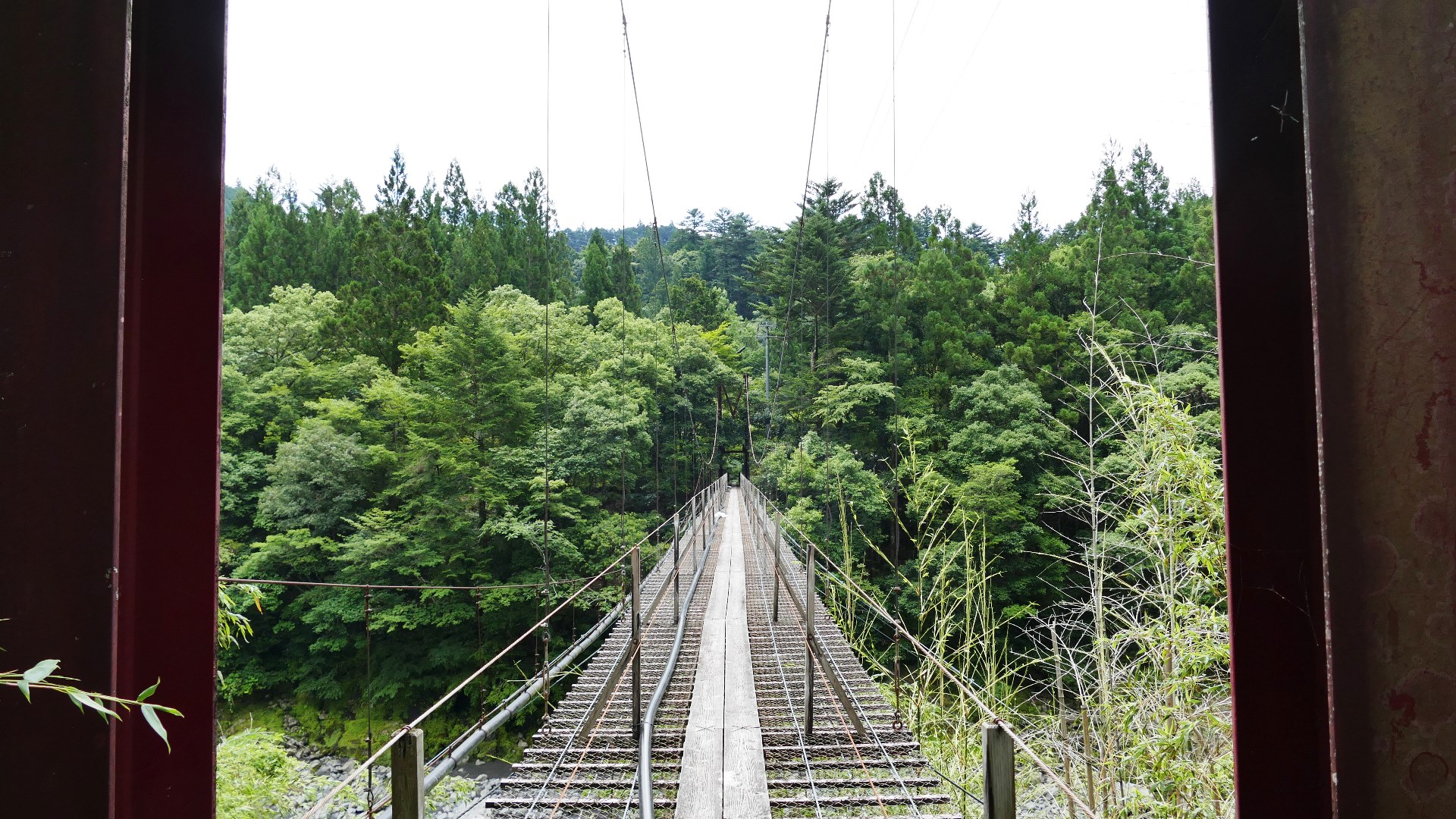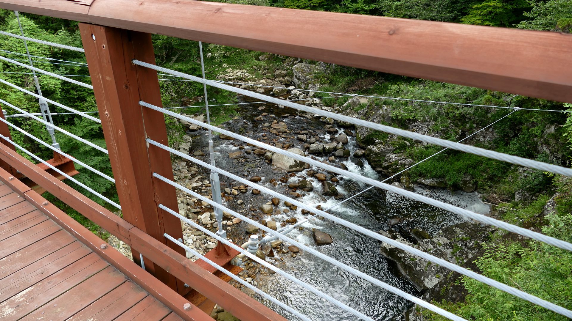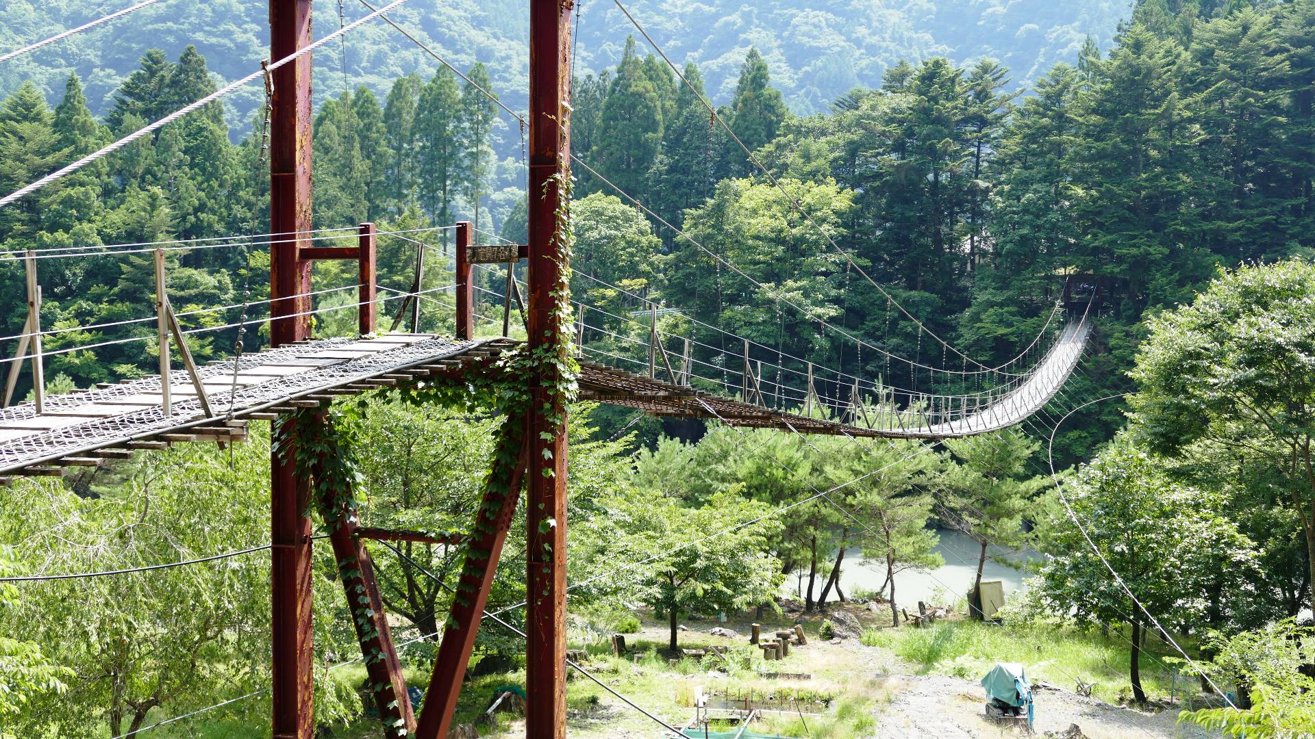 | 八木キャンプ場付近のスリル満点の楽しいの吊橋 紅葉の時期はロケーションがキレイらしい 2024.7 |