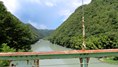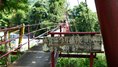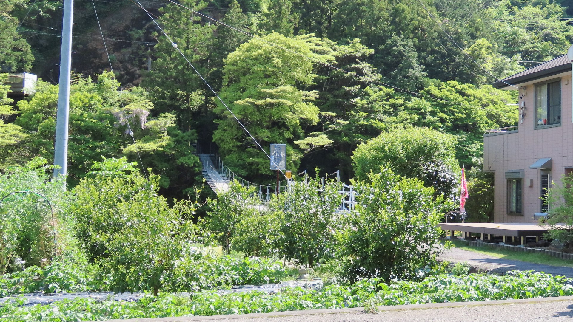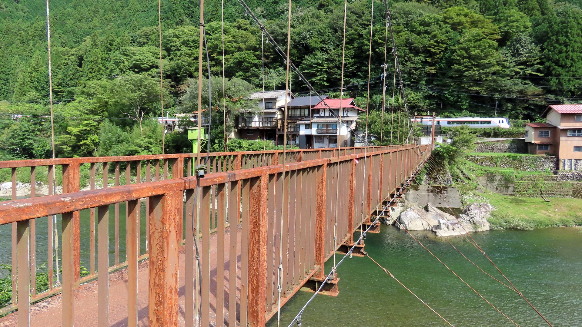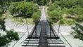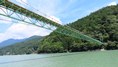 集落をつなぐ生活人道吊橋 ロケーションが良く 映画「ガメラ」の撮影に使われたらしい 橋長84m 2024.7 |