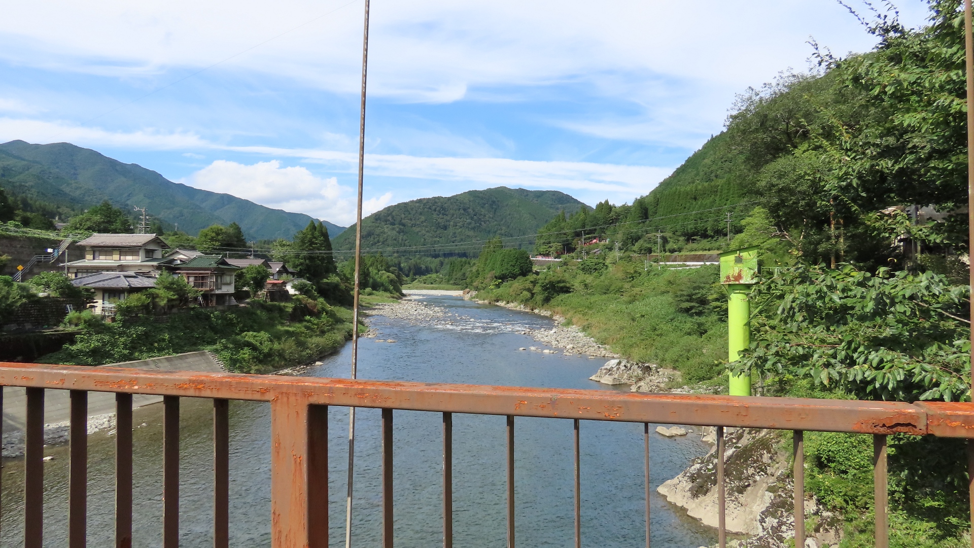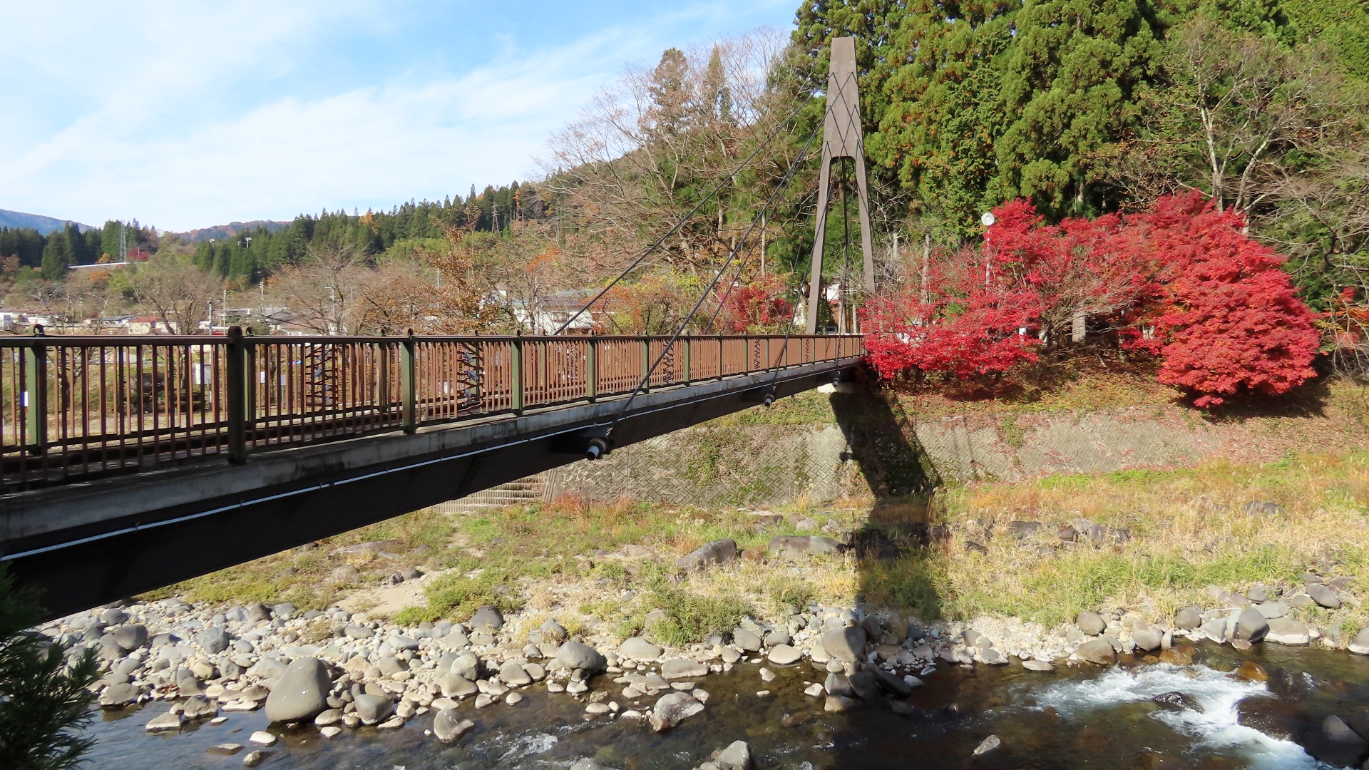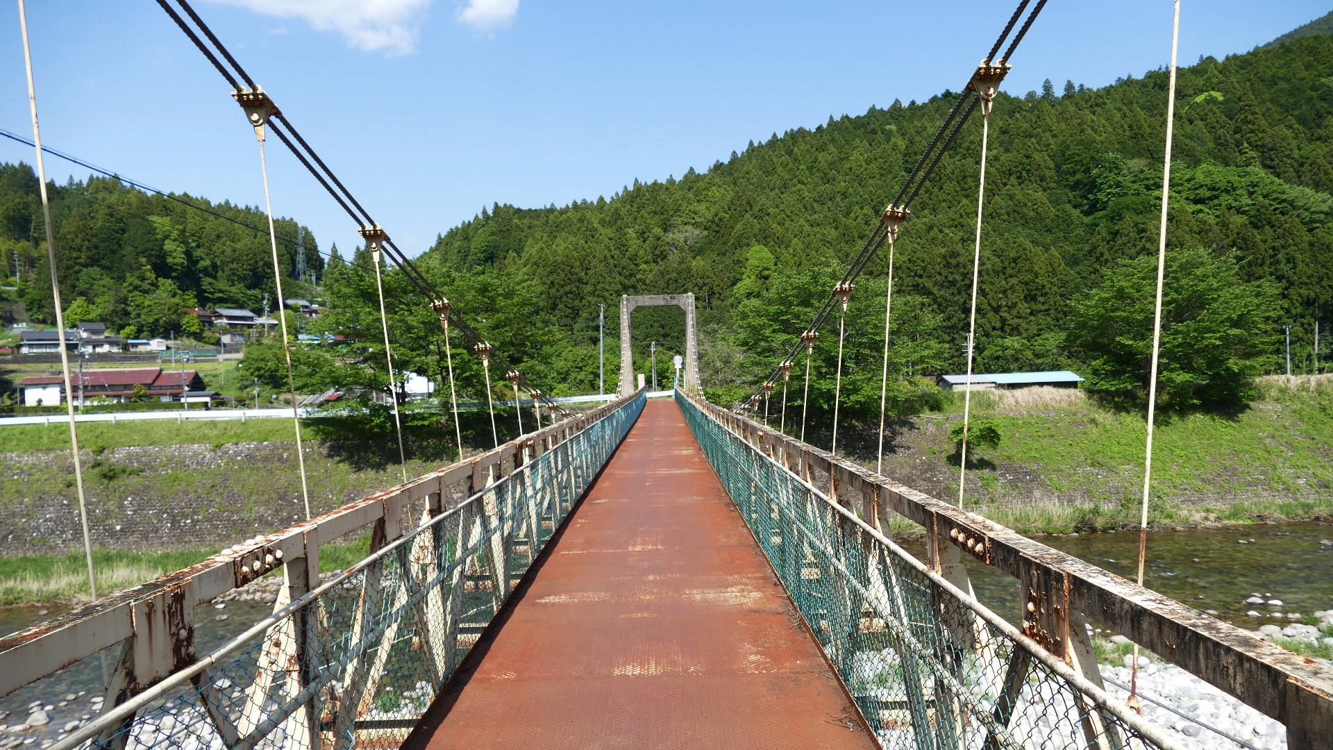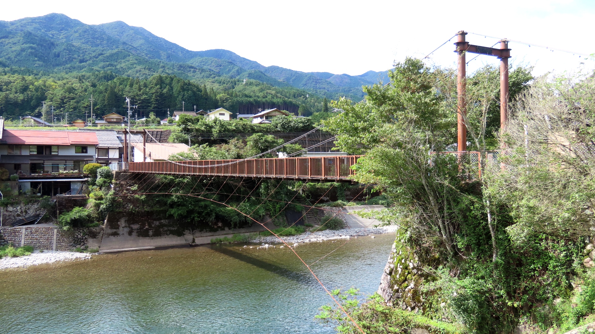 | 上呂駅上流の国道41号と県道98号をつなぐ飛騨川に架かる吊橋 2025.9 |