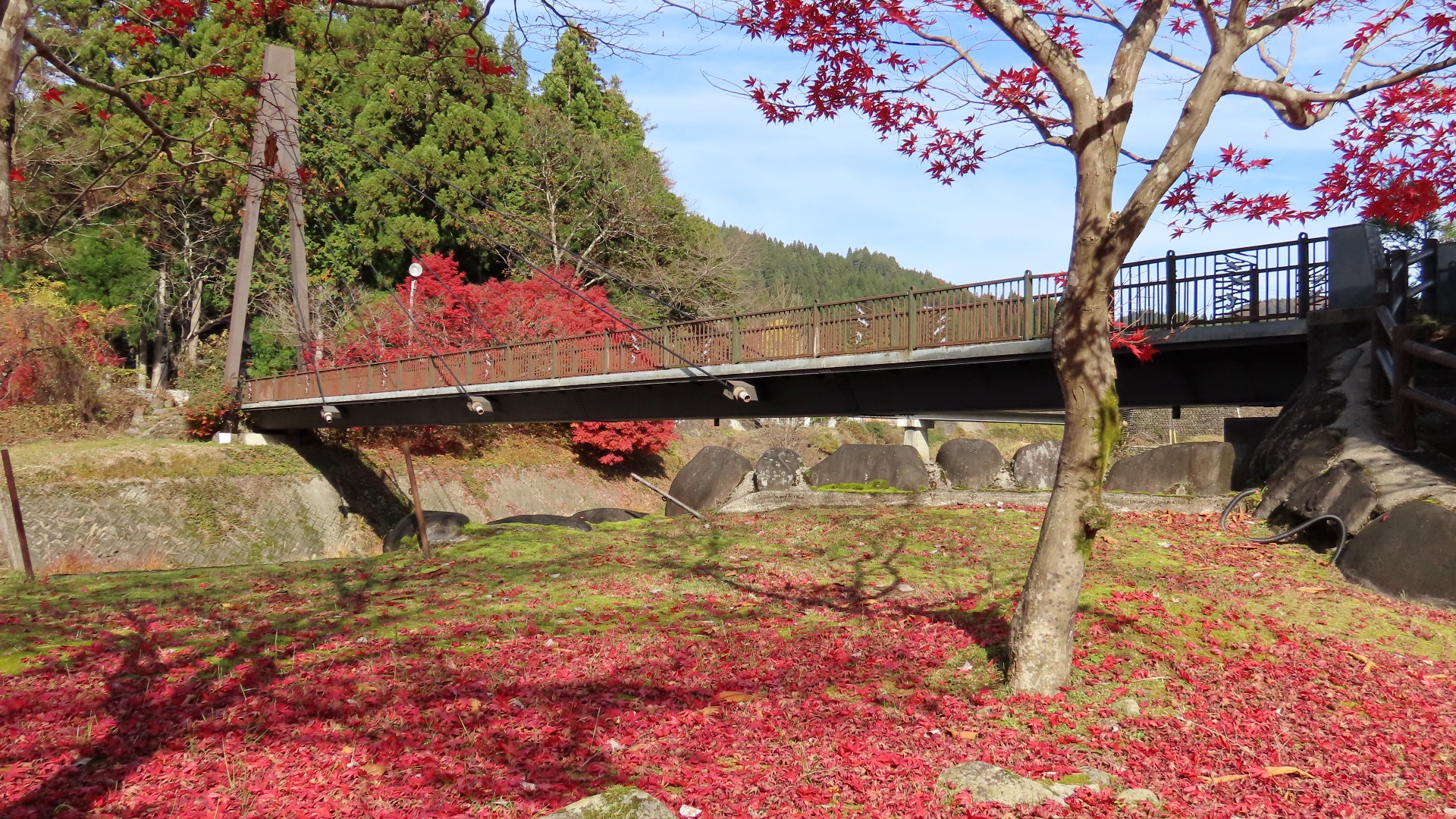 | 落合川に架かる人道橋 木製トラス 長さ69m 2021.9 | 有森渓谷にある吊り橋 2024.11 | ||||||