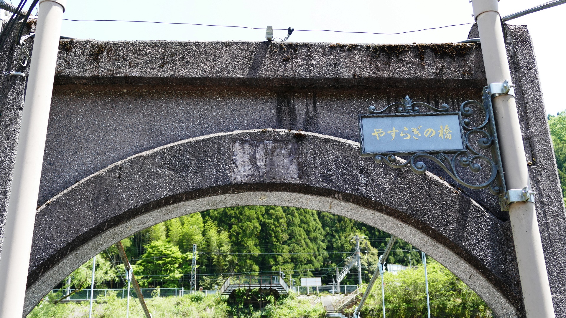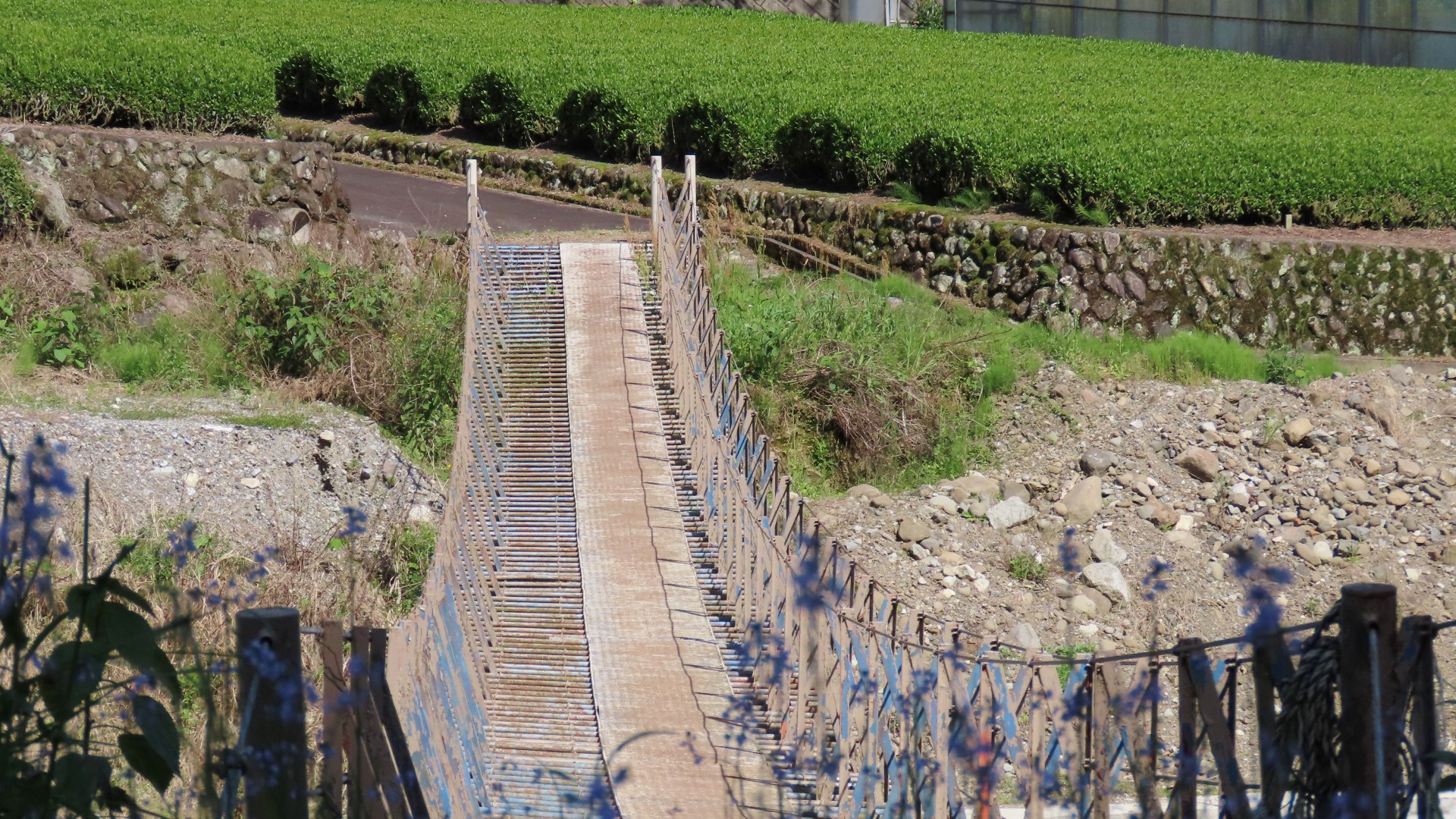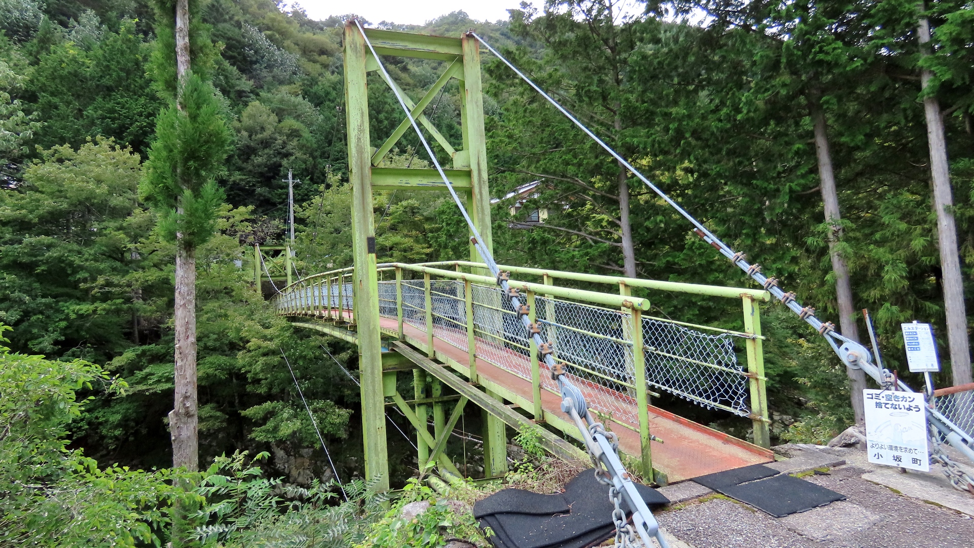 TV番組「道との遭遇」で紹介された。恋のつり橋北の県道268号の小津トンネル旧道を観光地化するため建設されたタイル床橋。道中はとても遊歩道と思えない落石や雑草。2023.8 | ||||||