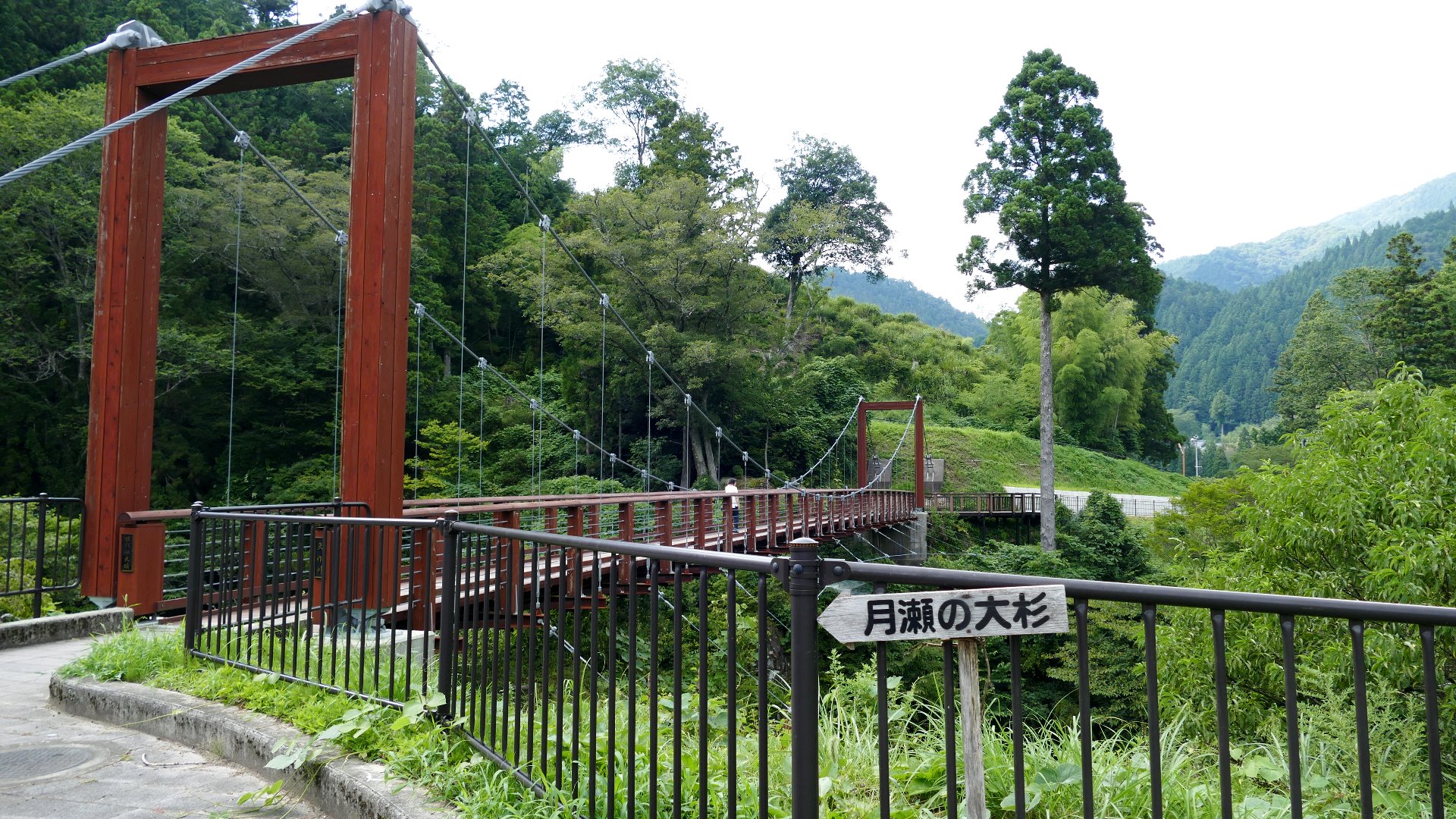 | 国道153号線沿いの月瀬の大杉がある大杉公園内ある矢作川上流に架かる観光吊橋。村内には村の名をもじった「ネバーランド」がある 2024.8 | |||||||