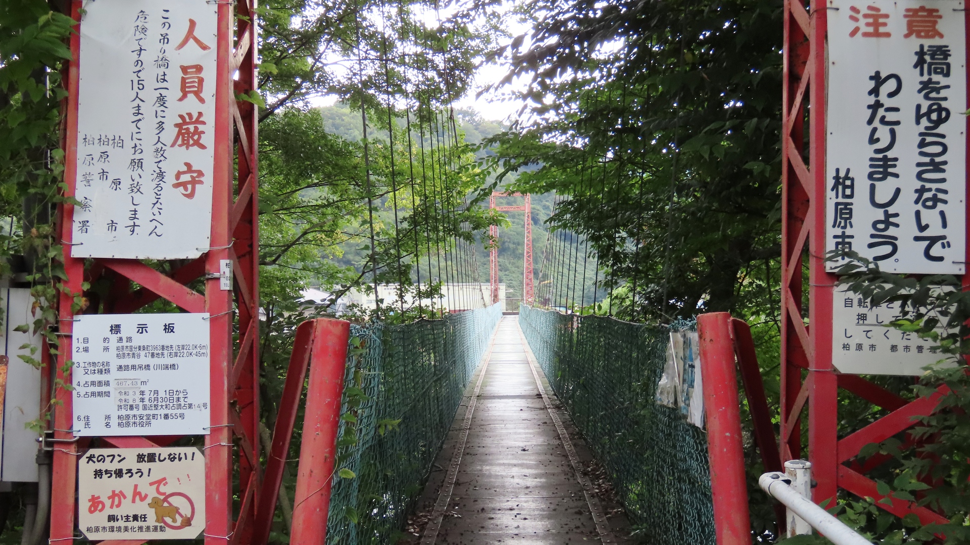 | 県道32号沿い粕川の川合堰堤に架かる吊橋。 中部電力が管理で関係者以外立入禁止。 2022.7 |