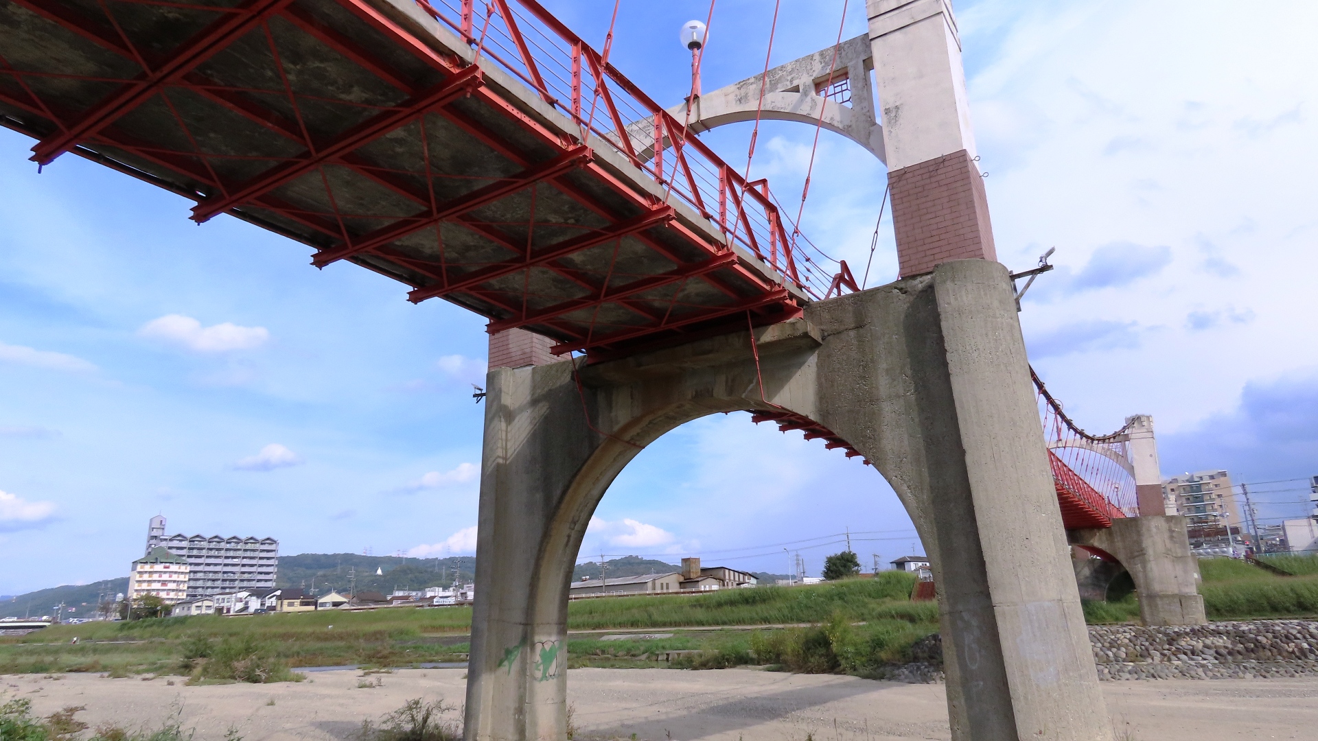 大和川の支流 石川に架かる、映画「国宝」のロケ地にもなった 昭和3年に架橋の重文・五径間吊橋 2025.11 |