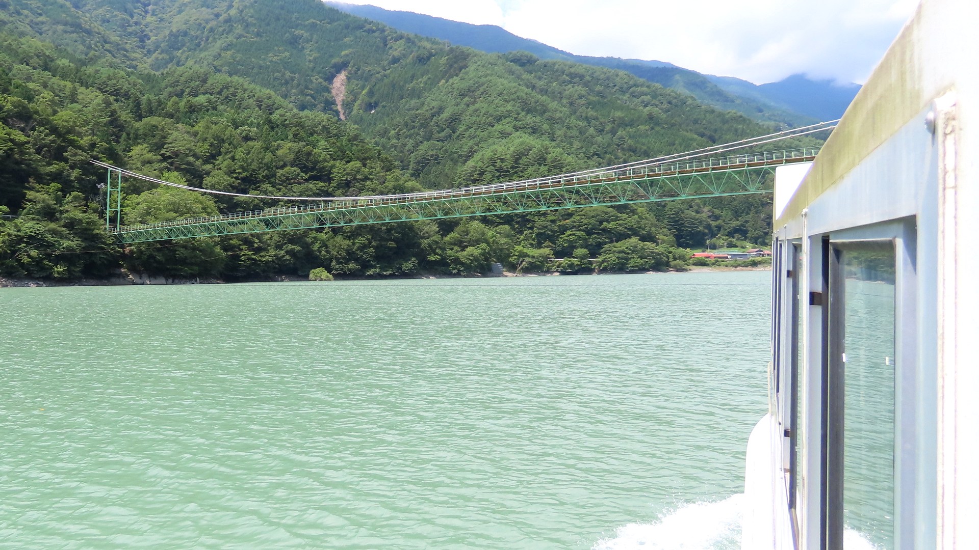 静岡市が運営する「井川湖渡船周遊便」(無料・要予約)に乗船し 井川大橋を下から見物 2025.8 |