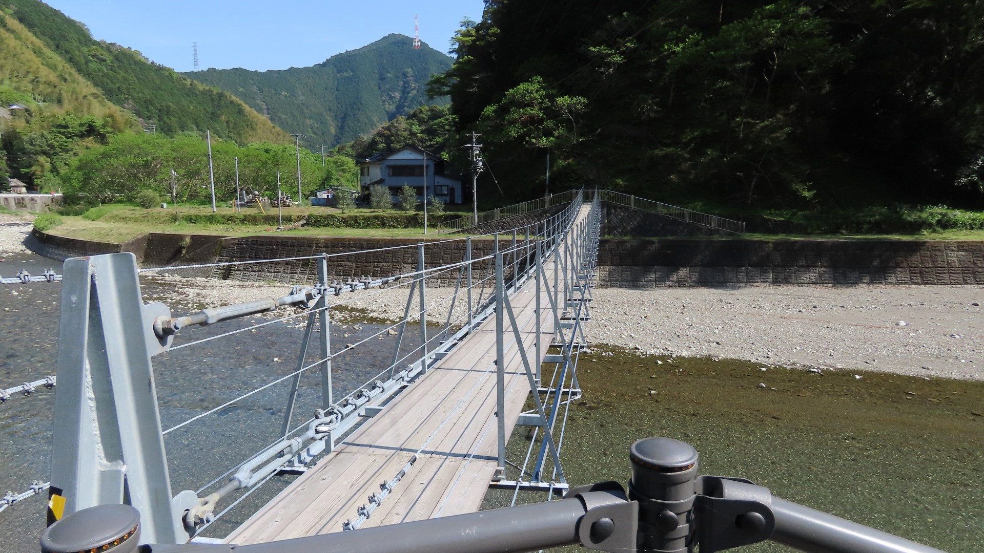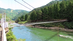 | 旧国道168号から対岸の清水集落へ渡る生活橋。橋長137m