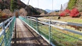 | 県道50号から桂川を渡りトロッコ保津峡駅へ唯一のアクセス手段である吊橋。 保津峡下りが風光明媚。 2022.10 |