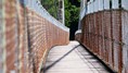 | とにかく長い、全長約280m、県道側スロープ含めると主塔が4本ある。 床は木板だが、安心して渡れるが結構ゆれる。 |