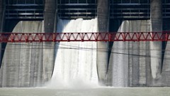 国道158号沿いの九頭竜川の鷺ダム 下流に架かる送水管橋 2023.7 |