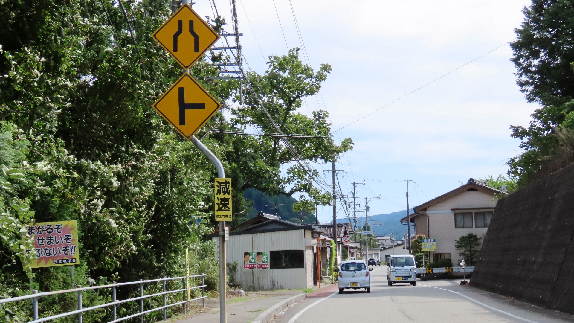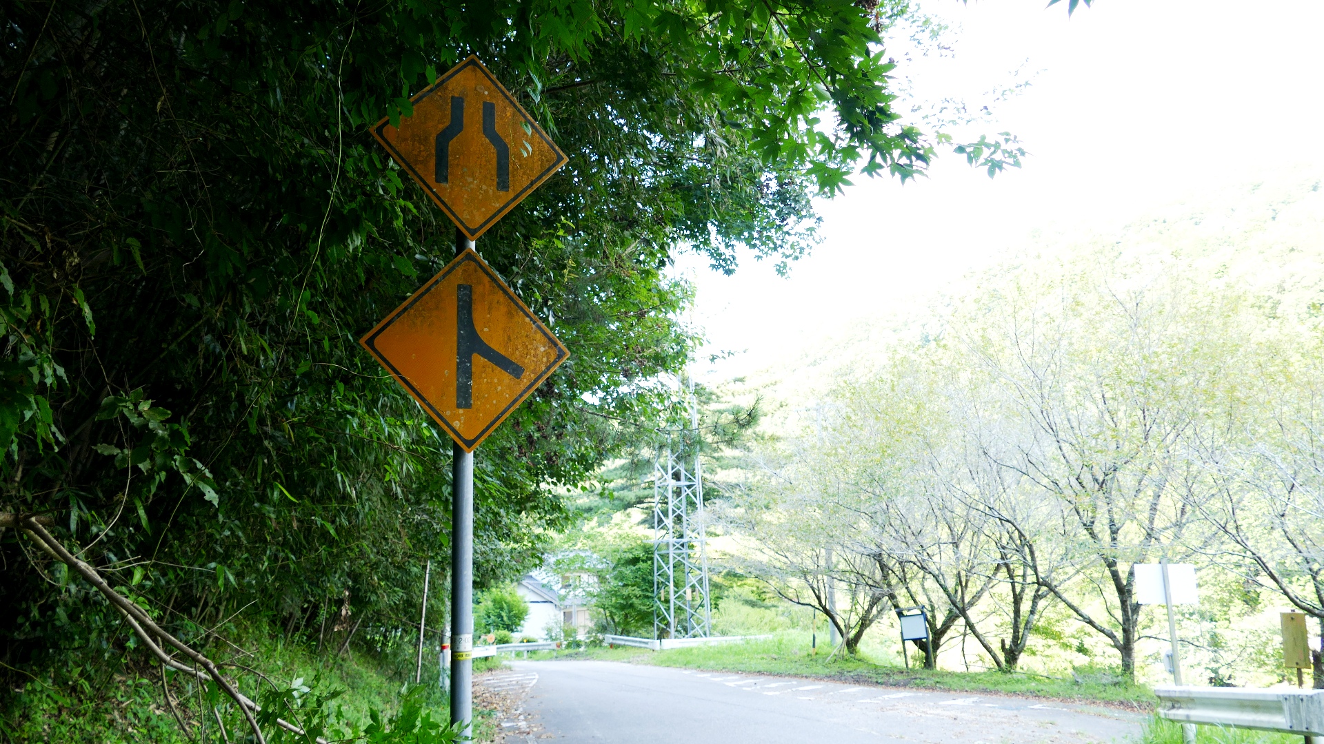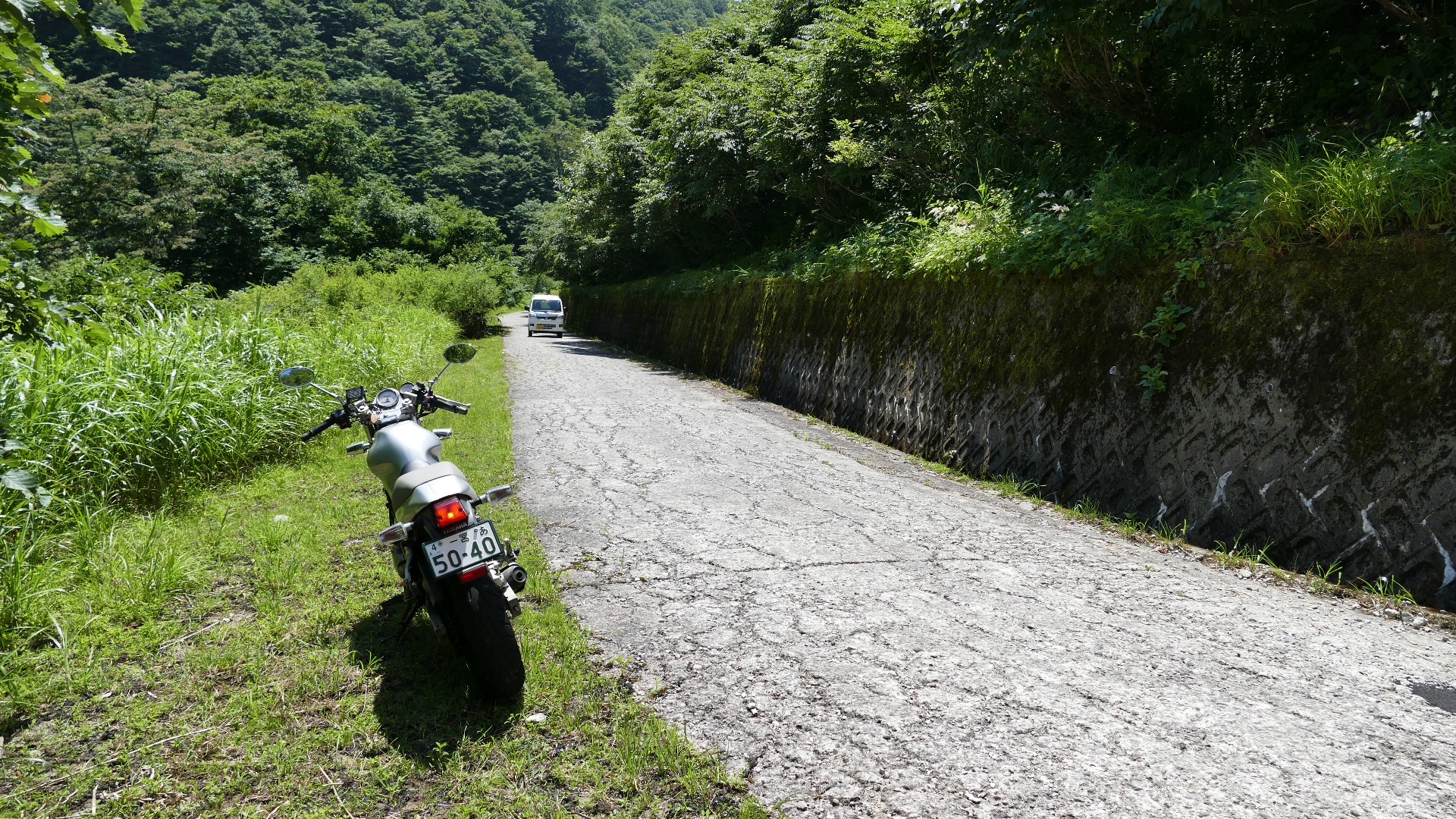 | 県境の「温水峠」 | 福井県に入ってしばらくすると かなり傷んでいる区間あり |