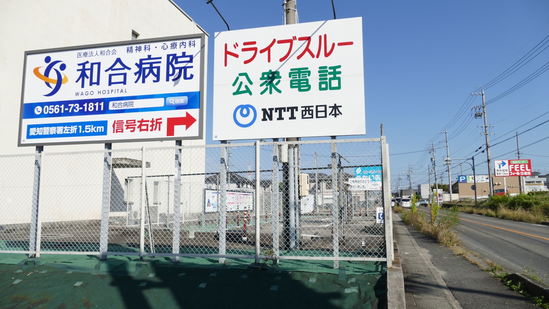 | 日本で唯一の「ドライブスルー公衆電話」 1989年12月に設置。 衰退の一途の公衆電話であるが、2019年にリニューアルされた。 NTT西日本日進電話交換所に隣接 2022.10 |