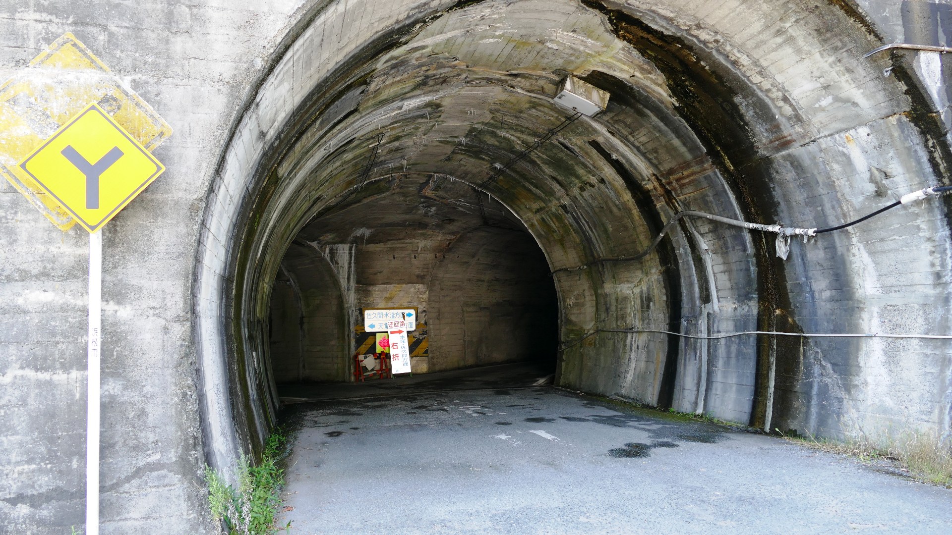 秋葉ダムの隧道 トンネル内部で分岐がある。 浜松市天竜区 2024.7 |