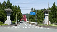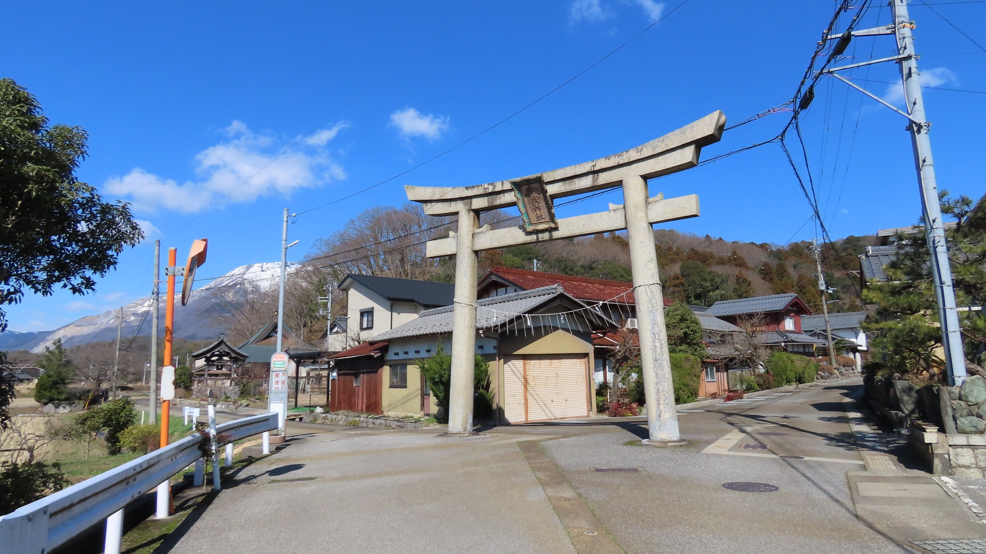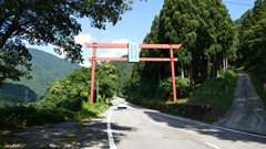 国道158号を跨ぐ鳥居 近くに神社は見当たらない 福井県大野市 2023.7 |