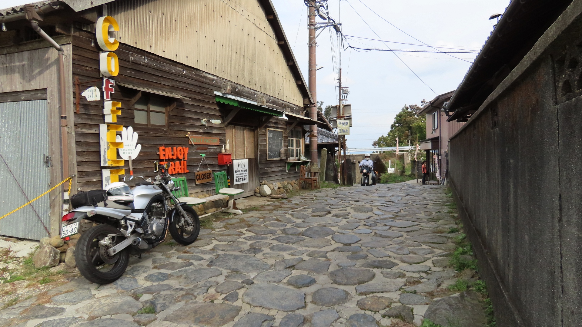 | 県境の「暗峠」 当時の名残なのか路面は石畳にかわり、趣のある国道だ。 | 峠を越え奈良県側を見下ろす | ||||||