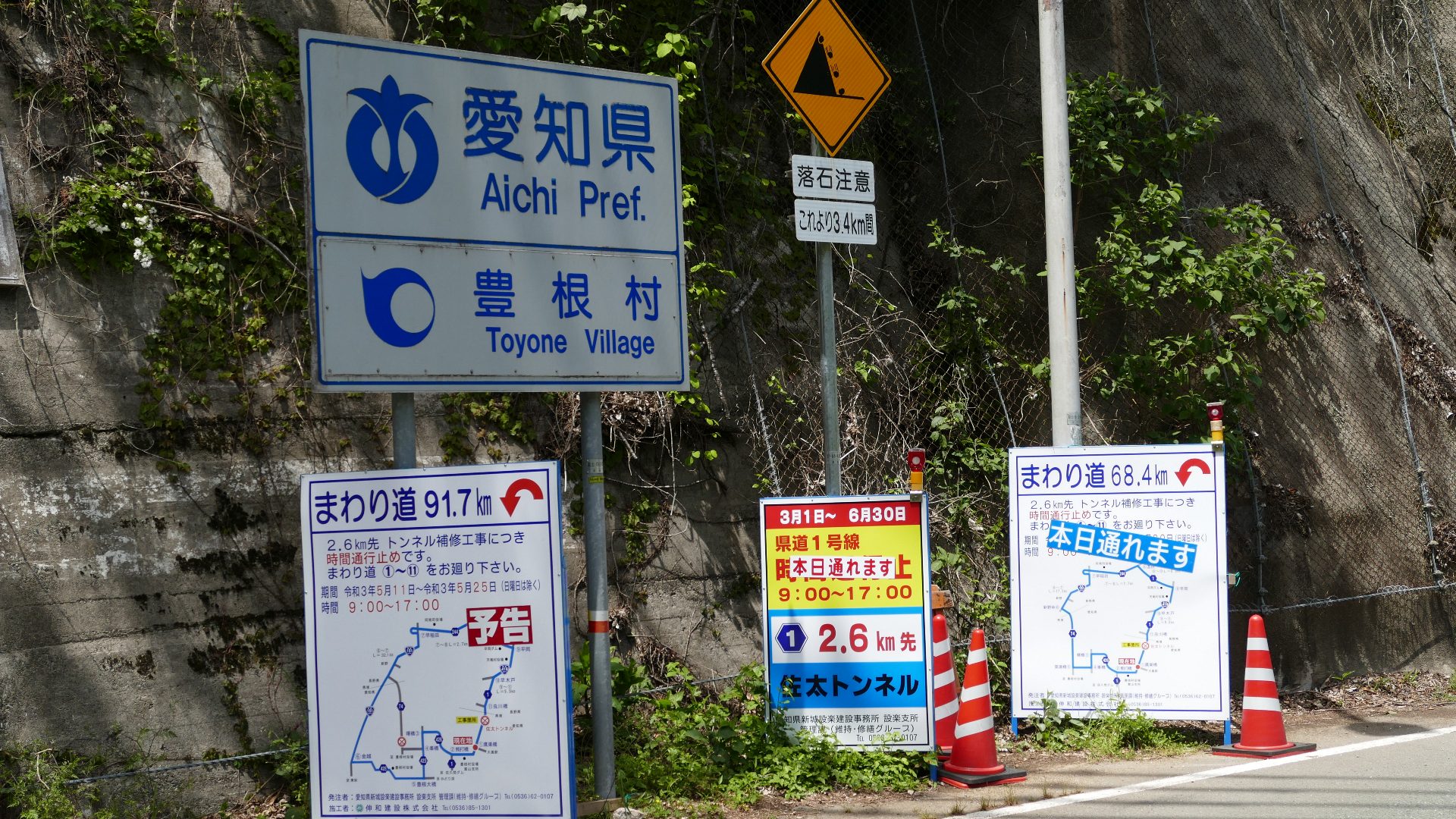 連続トンネルが待ち構える | 大嵐駅西側から先のトンネル工事時のまわり道は68.4kmまたは91.7km | ||||